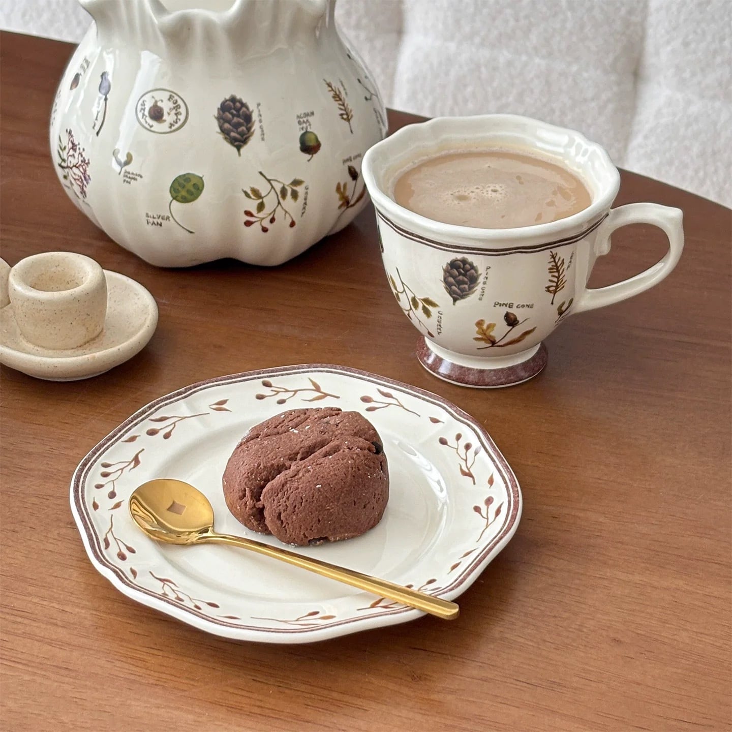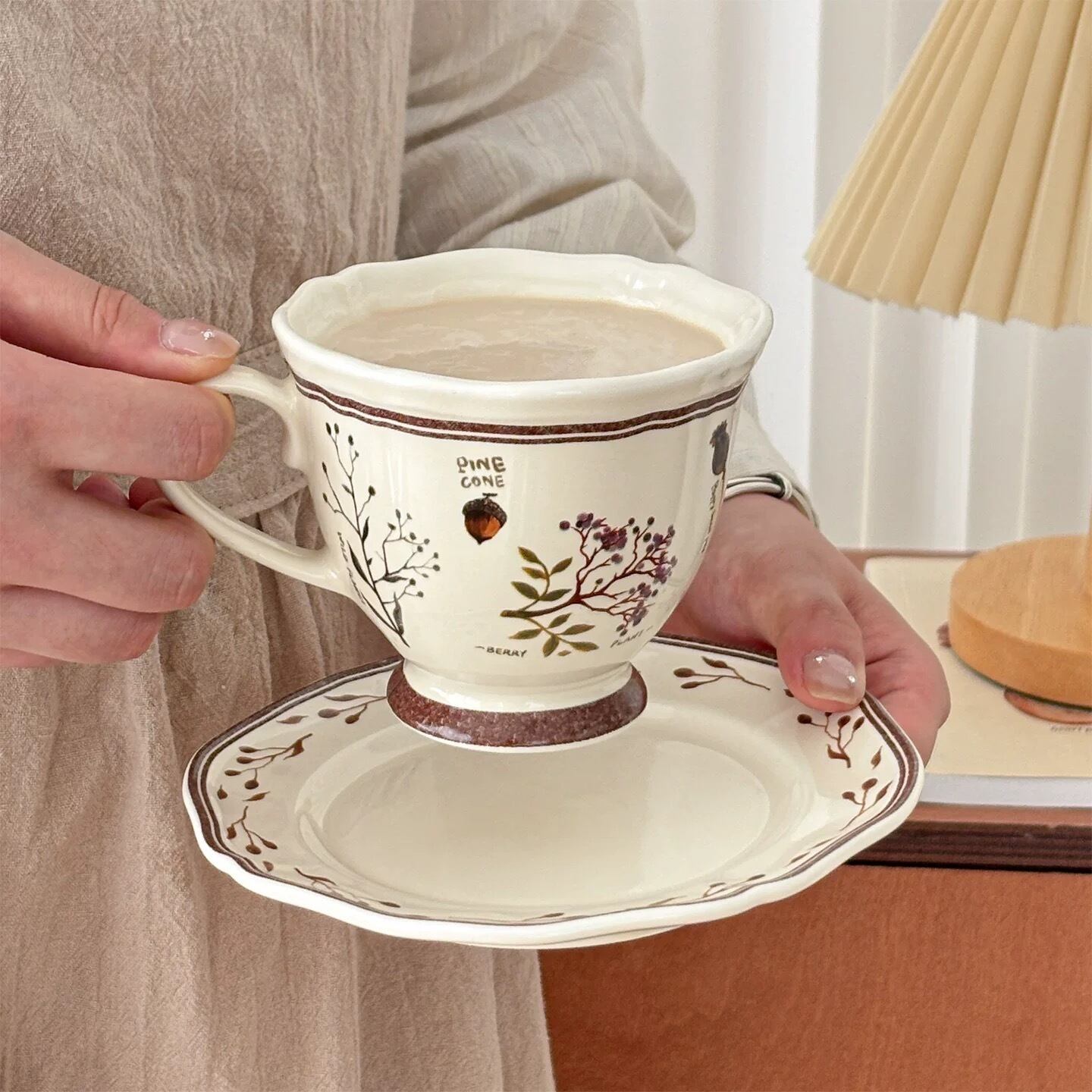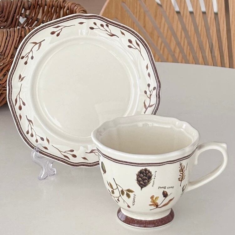 ★送料無料★コーヒー&紅茶兼用 韓国風マグカップ&プレートセット マグカップ カップ レトロ 韓国雑貨 北欧風