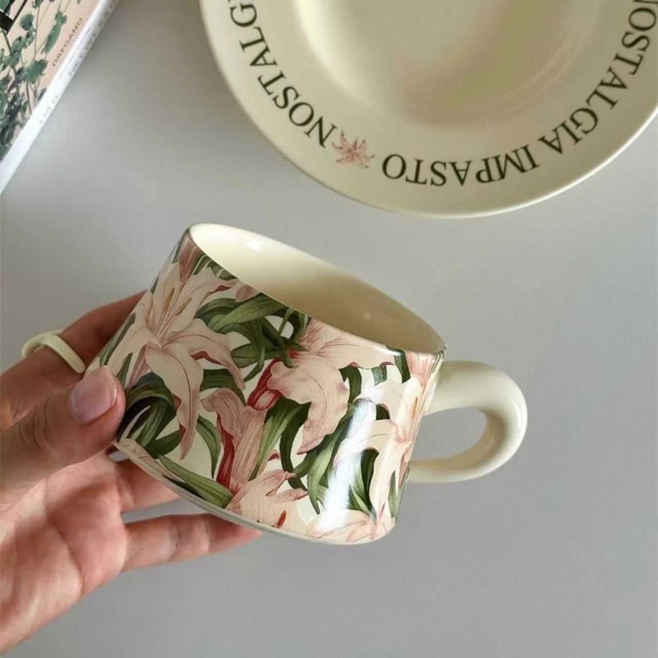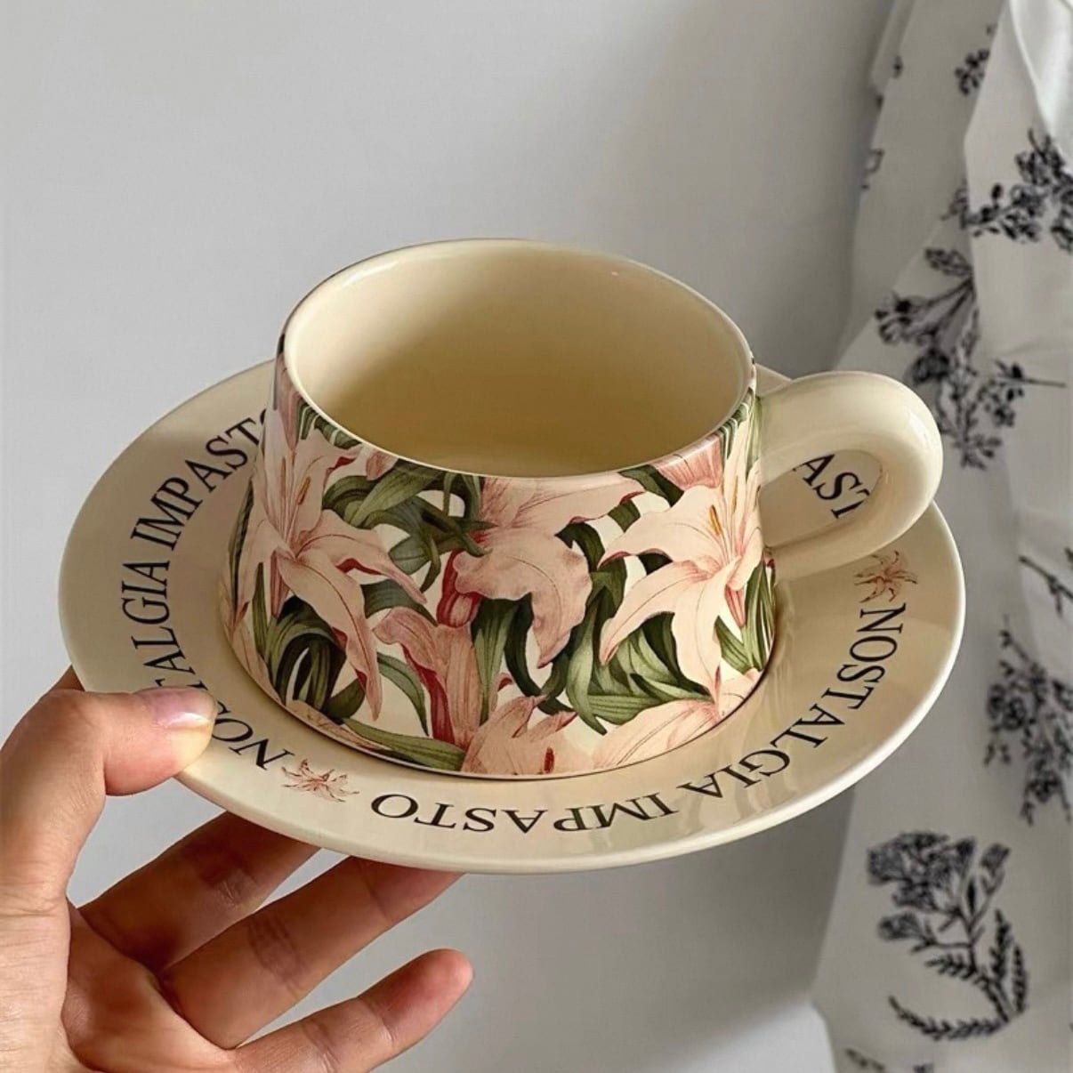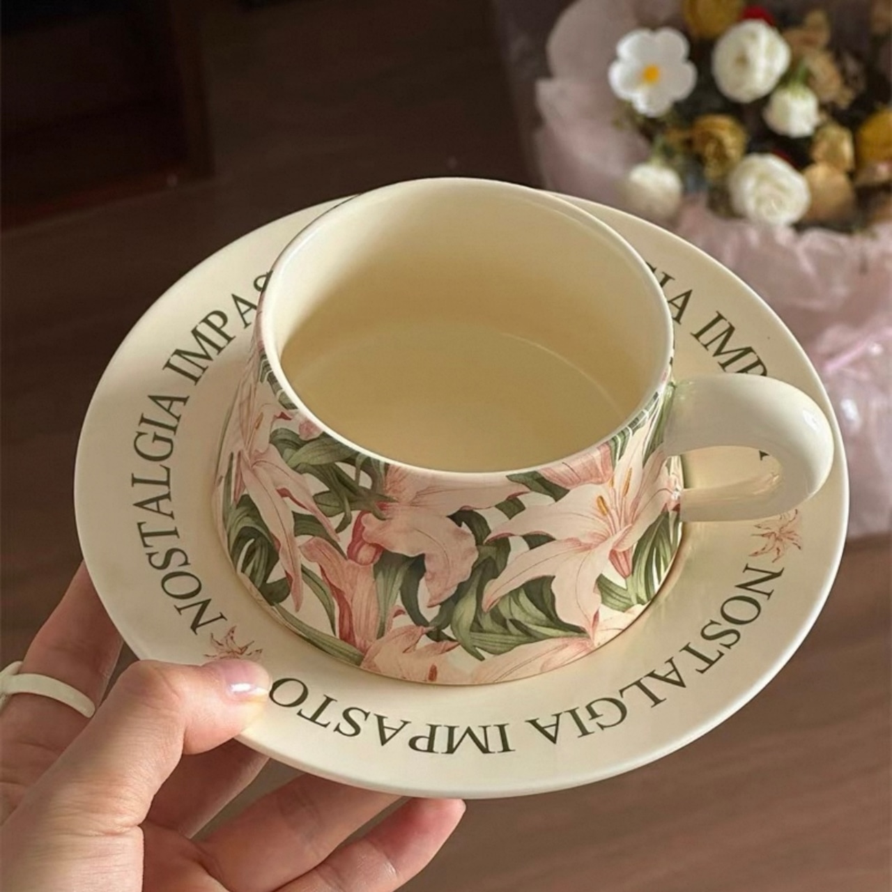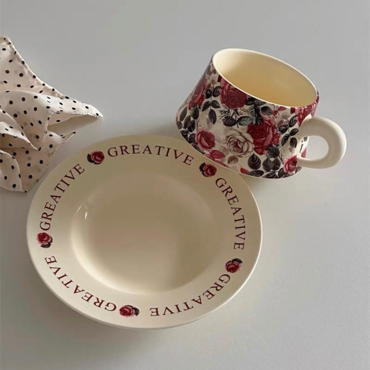 ★送料無料★コーヒー&紅茶兼用 韓国風マグカップ&プレートセット マグカップ カップ レトロ 韓国雑貨 北欧風
