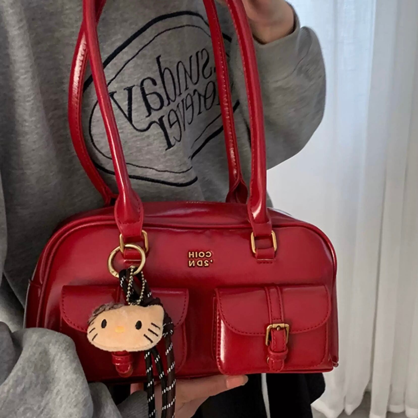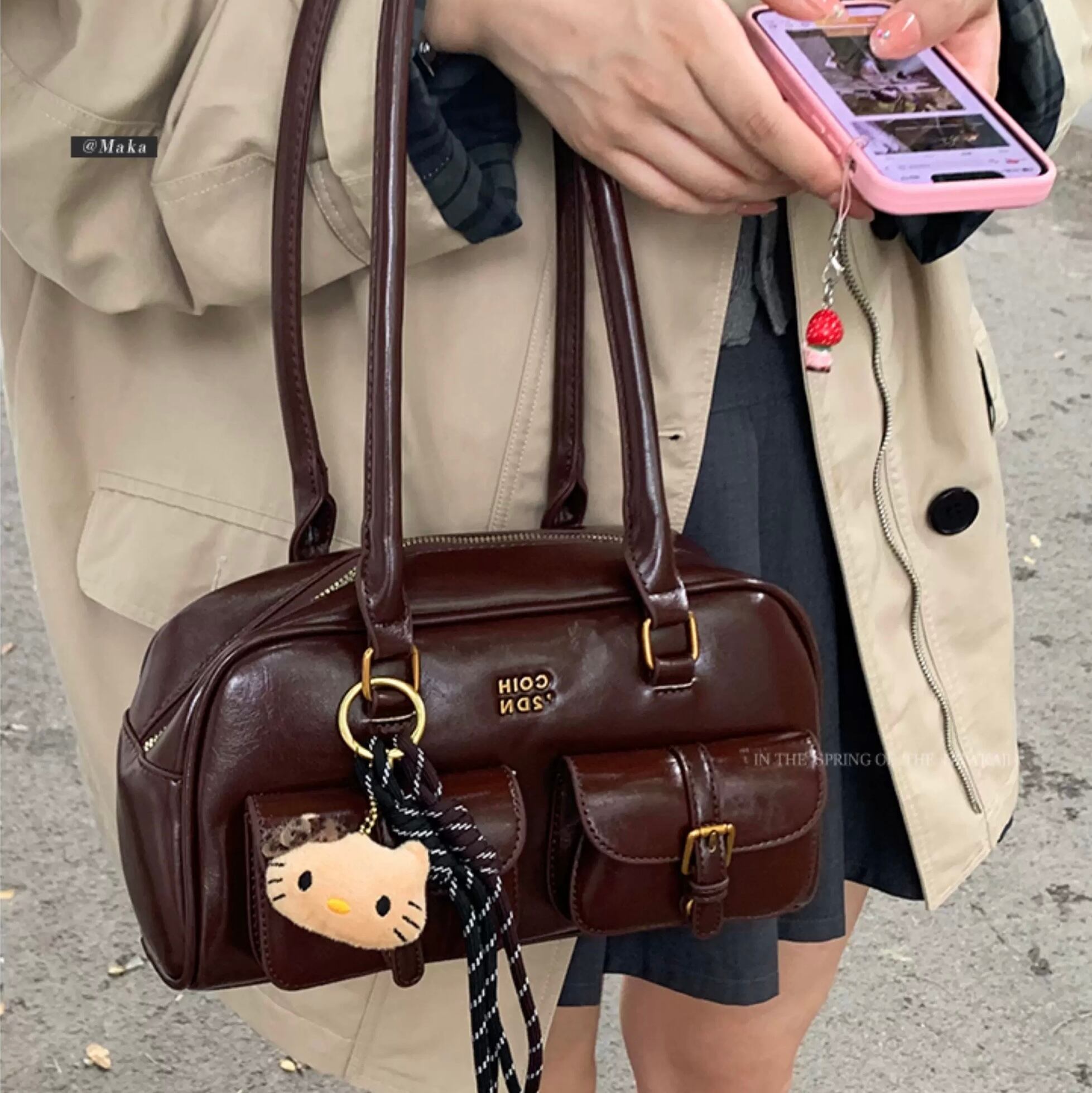 ★送料無料★韓国風 レトロクラシック ミニボストンバッグ ヴィンテージ風 レザー調 2WAYハンドバッグ トートバッグ 韓国雑貨