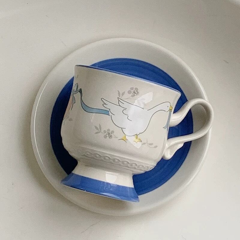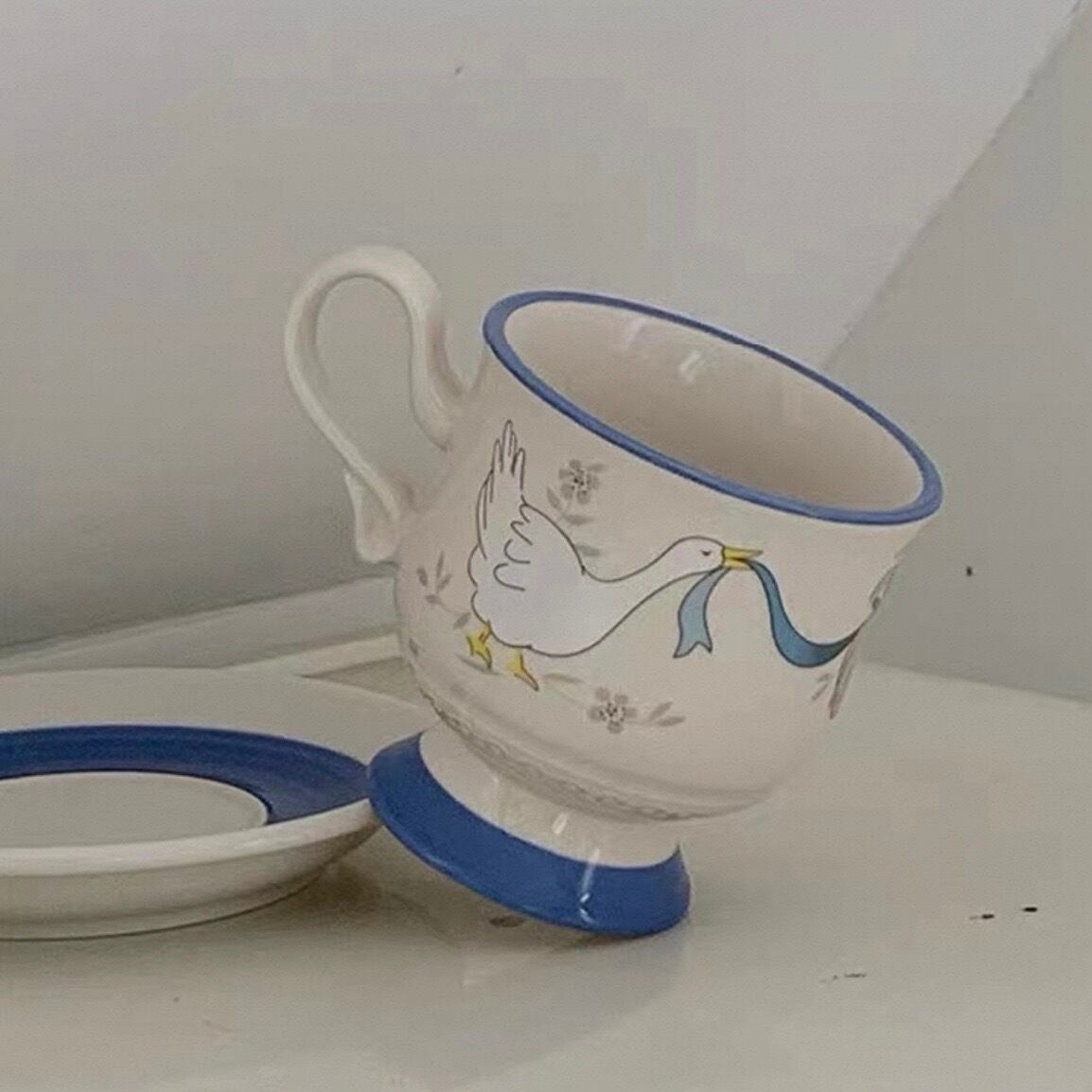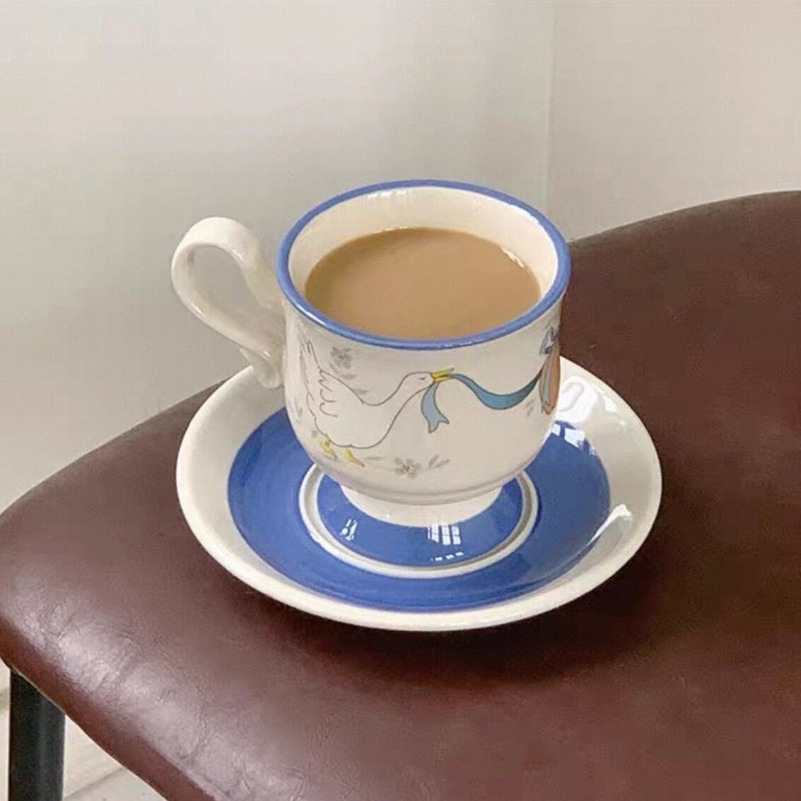 ★送料無料★コーヒー&紅茶兼用 韓国風マグカップ&プレートセット マグカップ カップ レトロ 韓国雑貨 北欧風