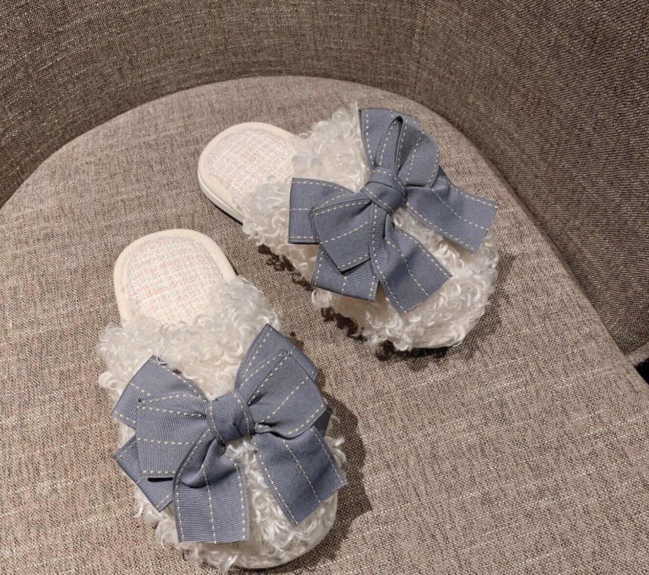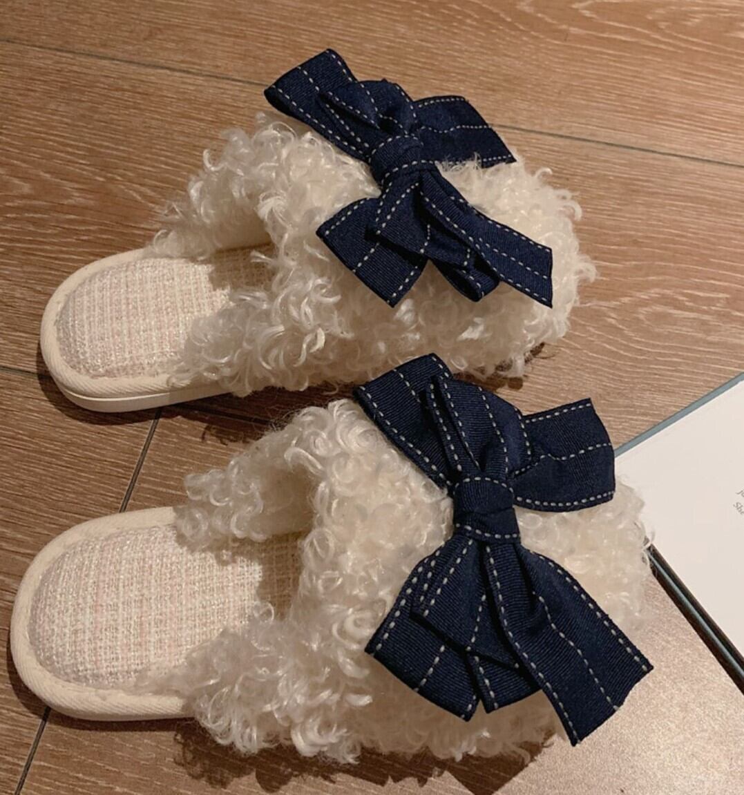 韓国風ビックリボンふわふわスリッパ