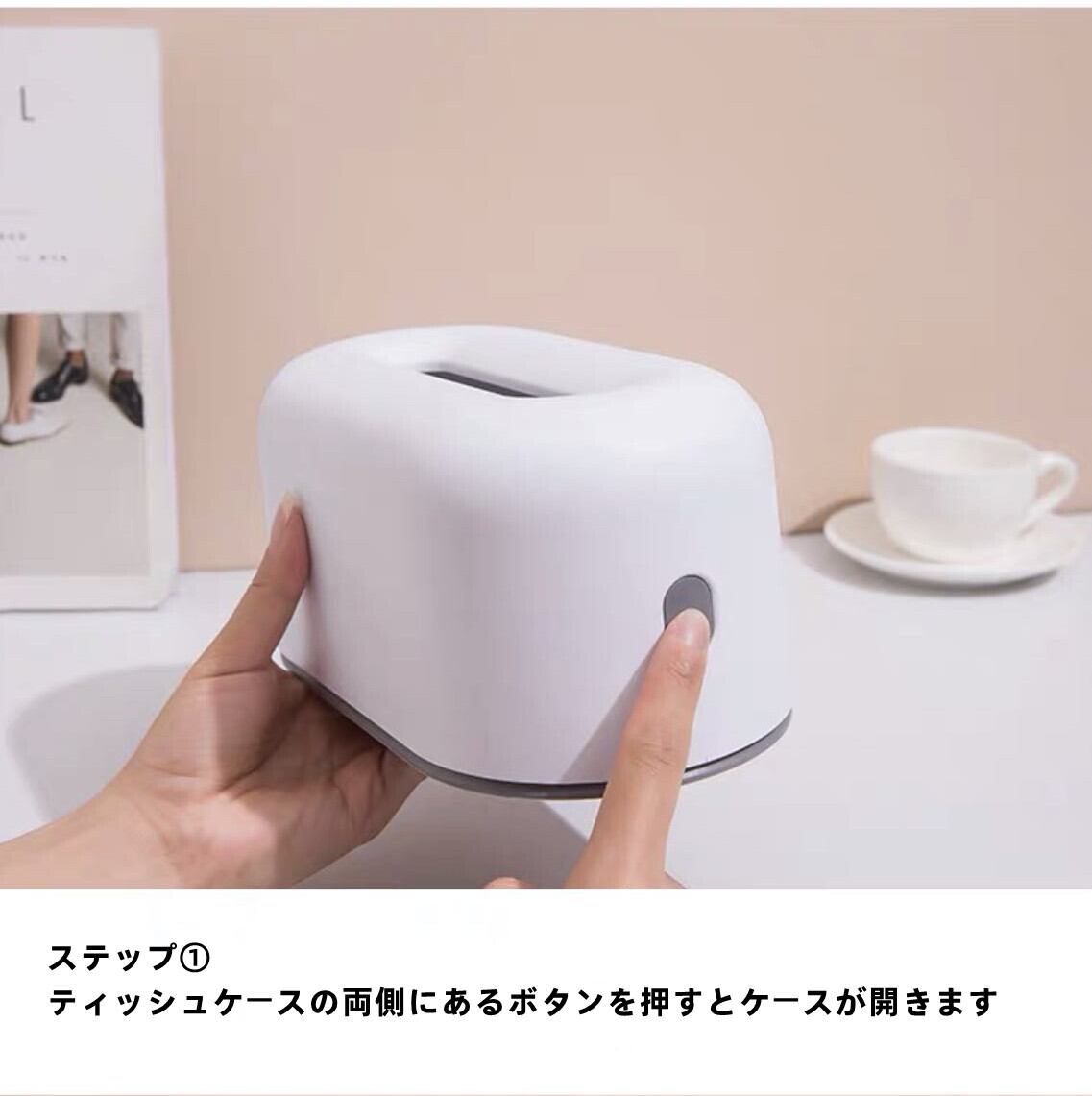 市販のパッケージだと生活感あふれるティッシュを、おしゃれに収納できます。