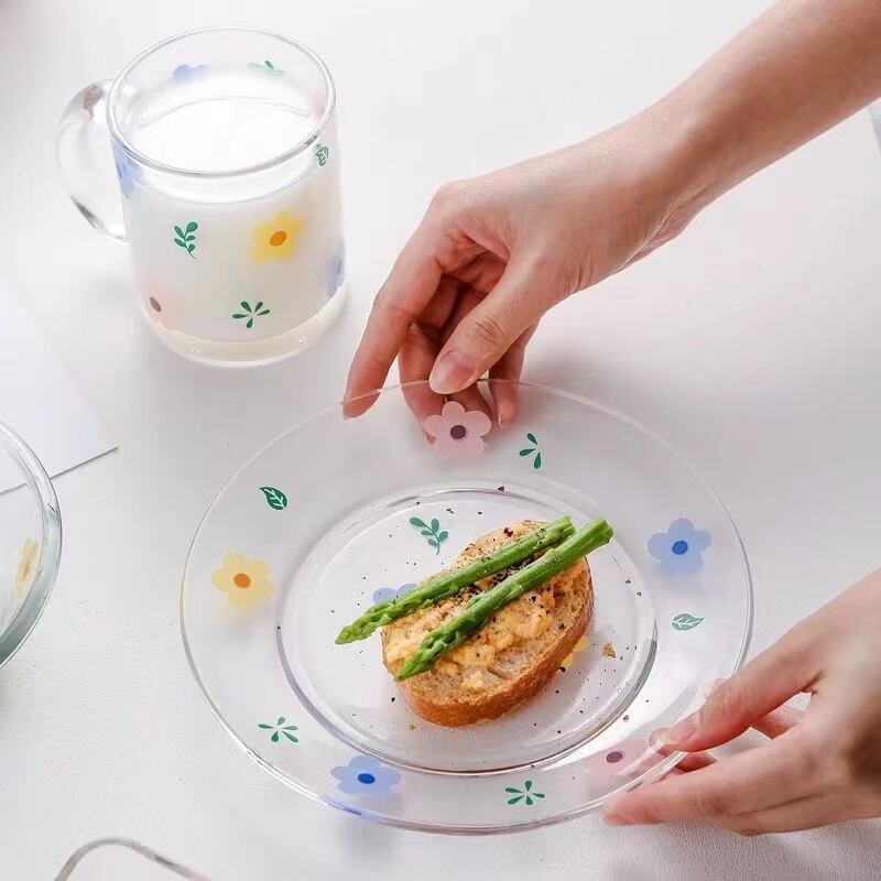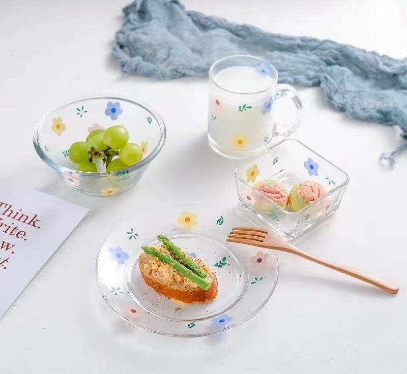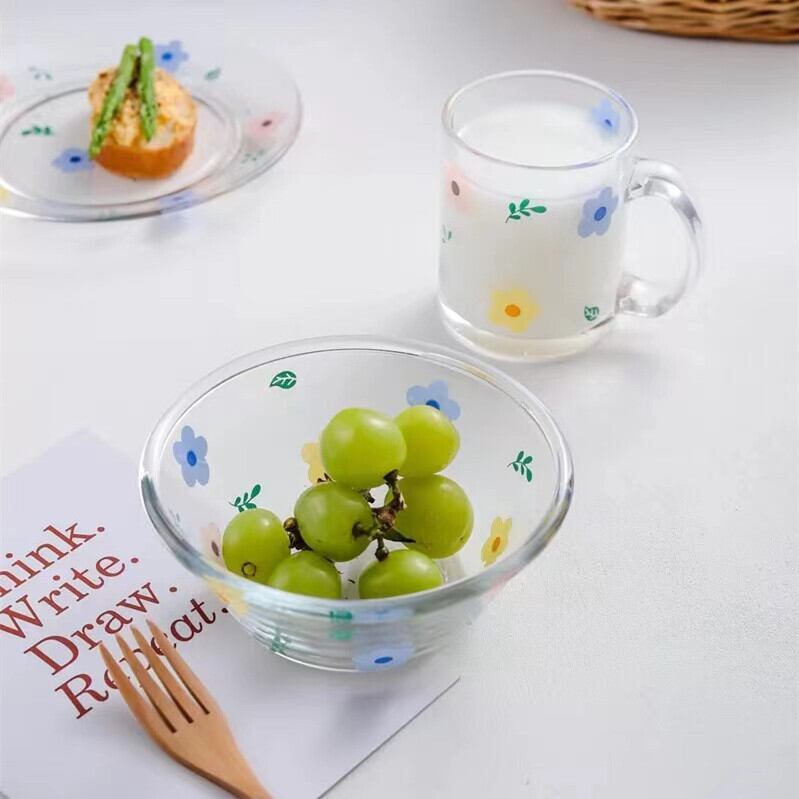 ★送料無料★韓国風花柄カップ+プレート+サラダボウル2枚合計4点セット 花柄マグカップ プレート サラダお椀 デザートプレート 韓国雑貨 セット食器