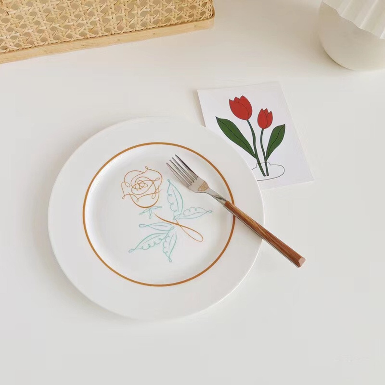 ★送料無料★韓国風 花柄プレート お皿 プレート デザートプレート 韓国雑貨