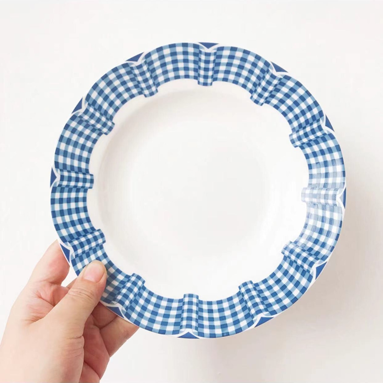 ★送料無料★韓国風 チェック柄プレート お皿 プレート デザートプレート 韓国お皿 アンティーク風 韓国雑貨