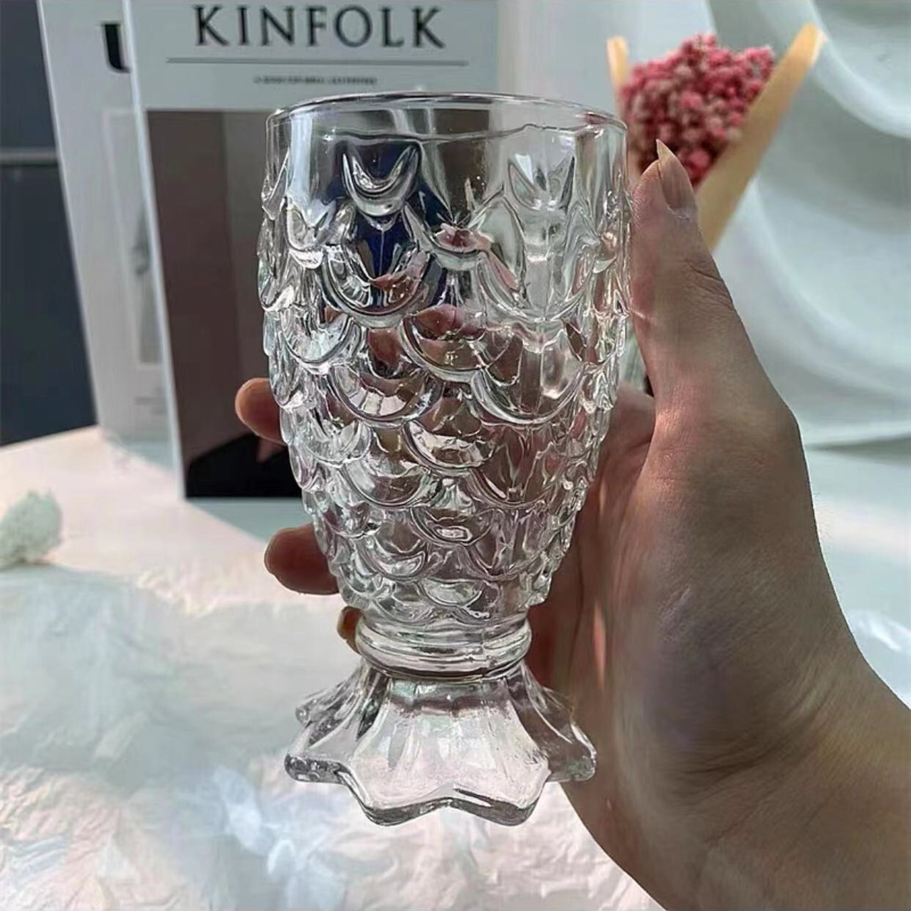 ★送料無料★韓国風 ガラスコップ おしゃれなグラス 人魚コップ グラスカップ カップ レトロ おうちカフェ 韓国雑貨