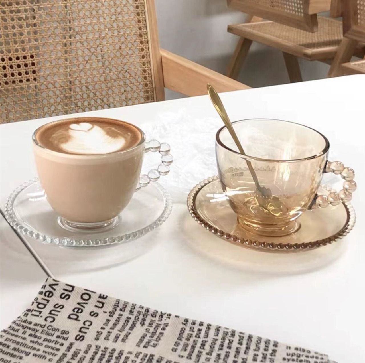 ★送料無料★カップとソーサーセット おしゃれなグラス グラス コップ レトロ おうちカフェ 韓国雑貨