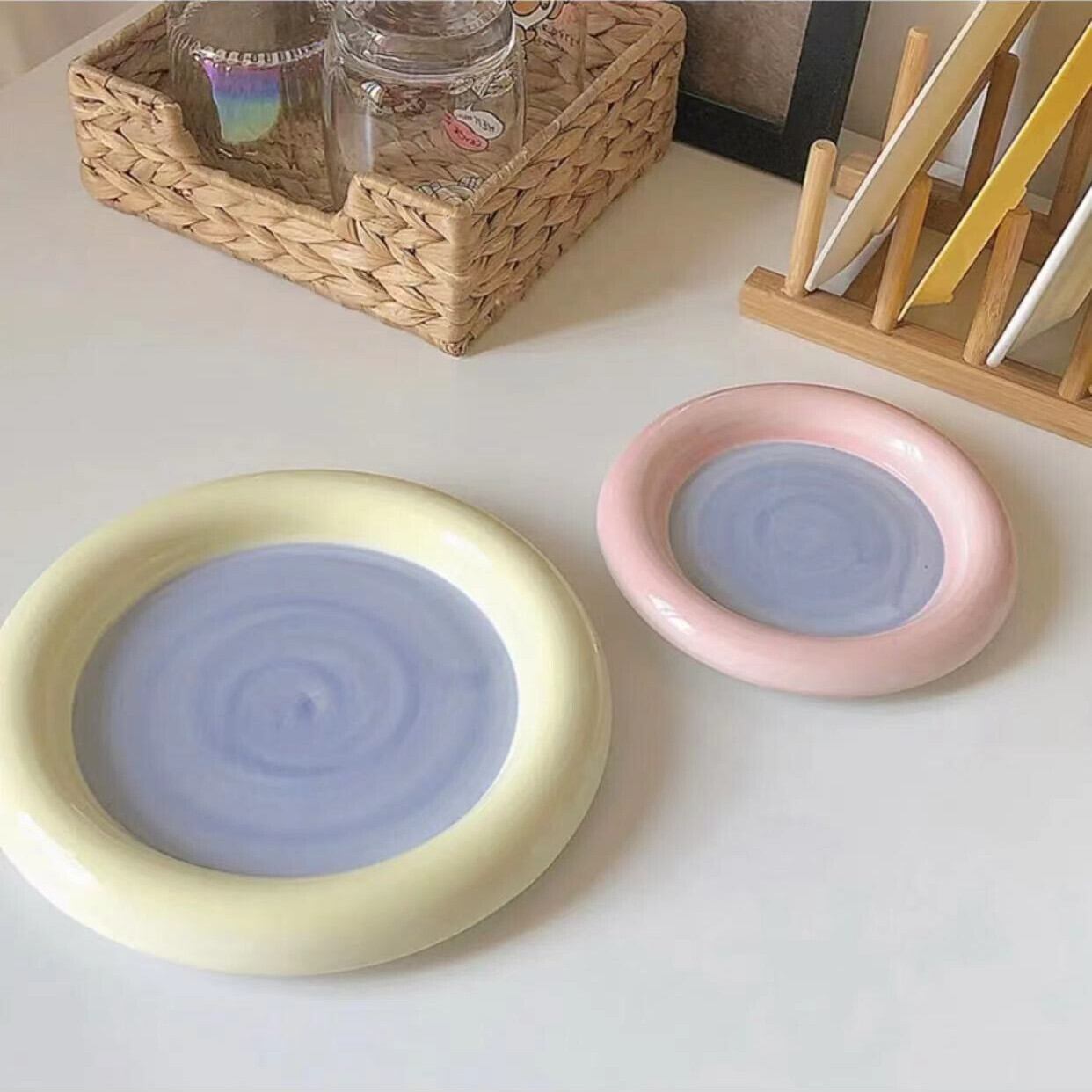 ★送料無料★韓国風 プレート デザートプレート アクセサリープレート 小物収納 ラウンドトレー ラウンドプレート インテリア雑貨 韓国インテリア