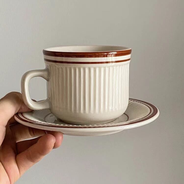 ★送料無料★コーヒー&紅茶兼用 韓国風マグカップ&ソーサーセット マグカップ カップ レトロ 紅茶カップ&ソーサーセット韓国雑貨 北欧風