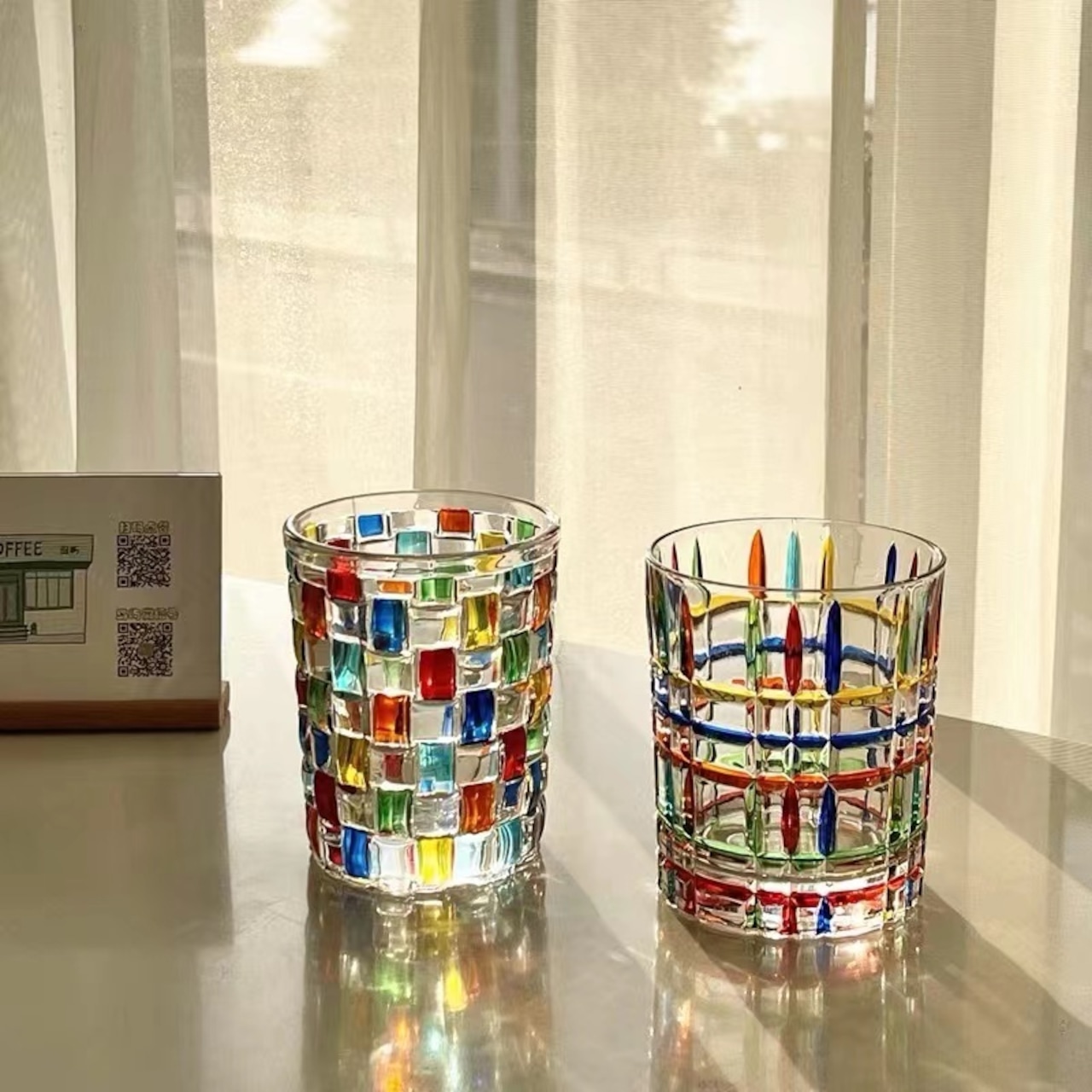 ★送料無料★カラフルなコップ おしゃれなグラス イタリアン風 グラス コップ レトロ おうちカフェ