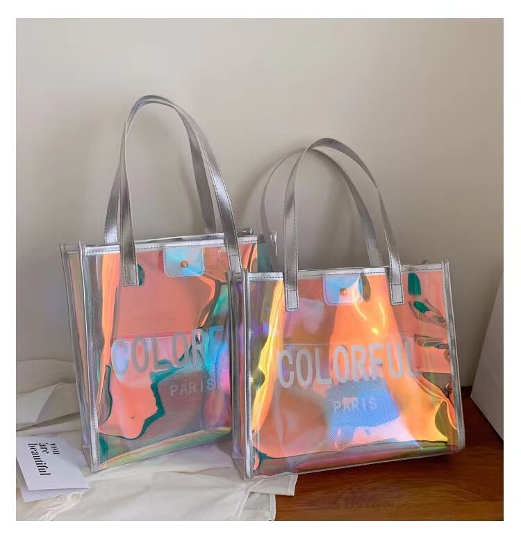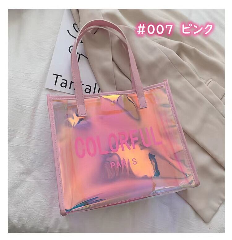★送料無料★韓国風 大人気オーロラPVCバッグ オーロラバッグ トットバッグ ハンドバッグクリアバッグ レディースバッグ 韓国雑貨 韓国ファッション 夏 大人気