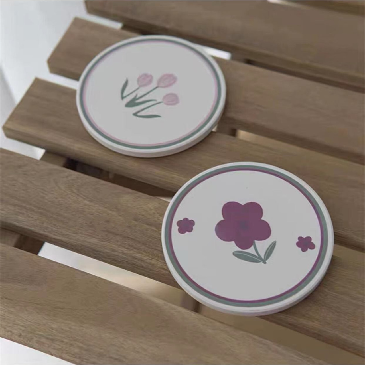 ★送料無料★韓国風 コースター 珪藻土 アクセサリー展示台 小物収納 アクセサリー収納 コースター 花柄 チューリップ 韓国雑貨 韓国雑貨 小物収納 韓国ファッション