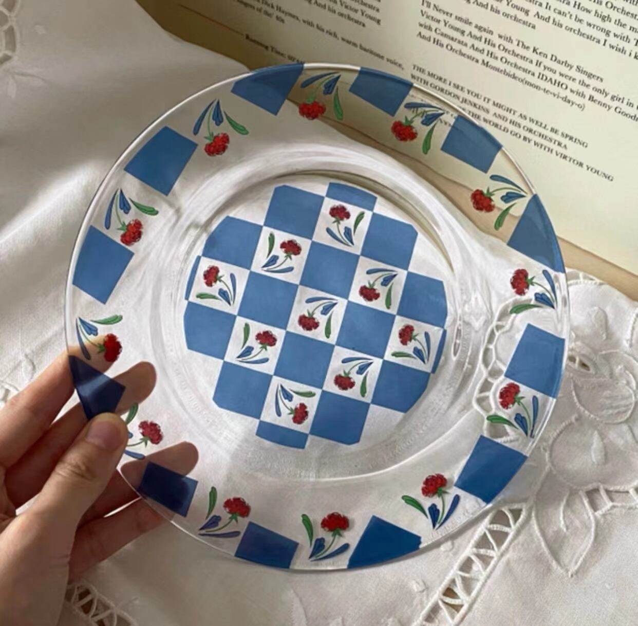 ★送料無料★韓国風 ガラスプレート ハートプレート お皿 プレート デザートプレート ガラスプレート 韓国雑貨