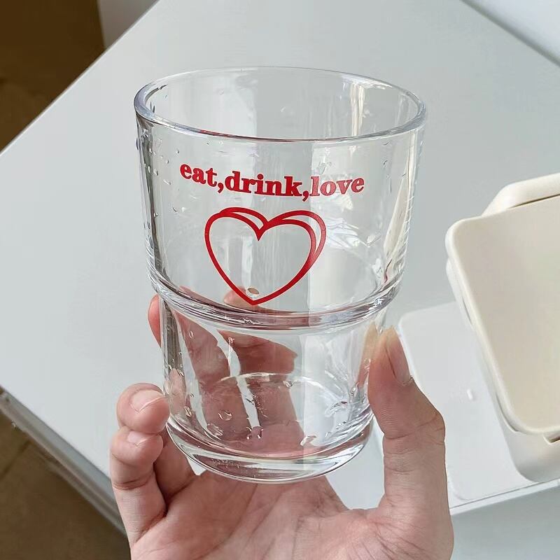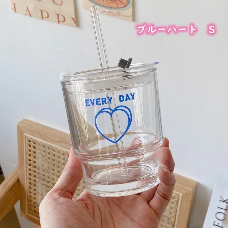 ★送料無料★韓国風 ストロー付きガラスカップ ガラスカップ ハート レトロ おうちカフェ 韓国雑貨 インテリア雑貨