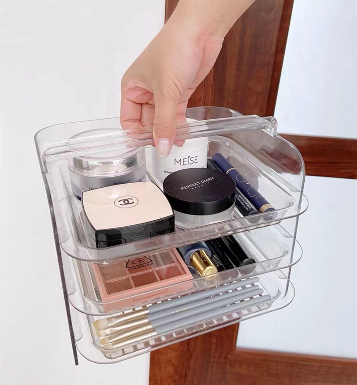 ★送料無料★韓国風 3段式クリアケース 収納ケース ドレッサー ストレージラック 収納グッズ インテリア雑貨 韓国雑貨