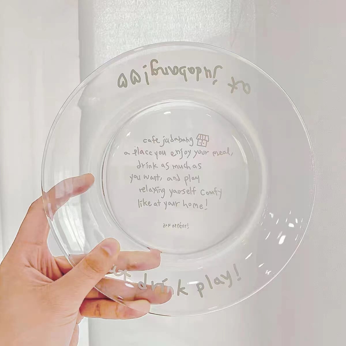 ★送料無料★韓国風 英文字プレート ガラスプレート ガラスお皿 お皿 プレート デザートプレート 韓国雑貨