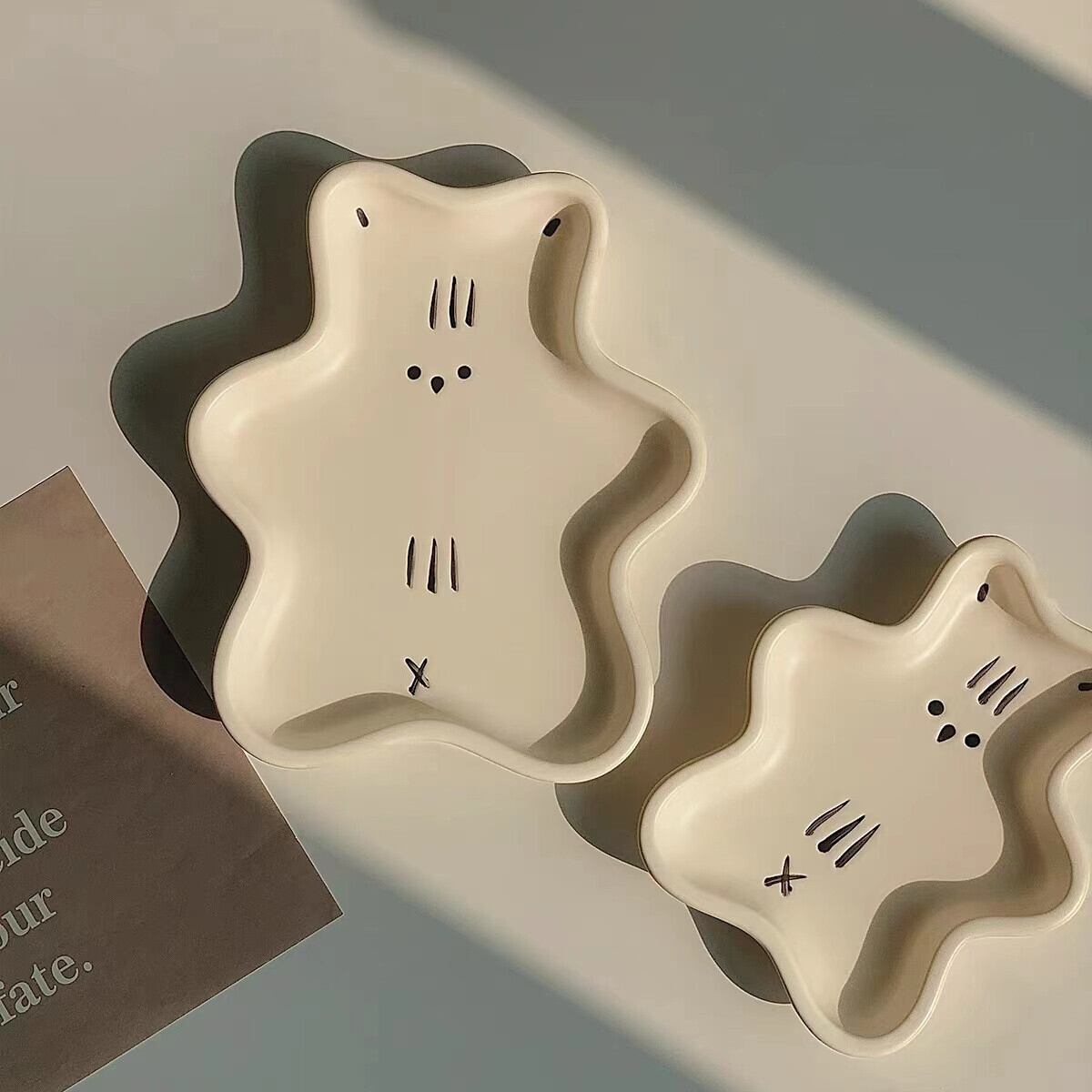 ★送料無料★韓国風 ベアプレート くまちゃんプレート デザートプレート お皿 バターナイフ ホワイトトレー アクセサリー展示台 アクセサリートレー 変形 不規則 小物収納 アクセサリー収納 コースター 韓国雑貨 小物収納 韓国ファッション