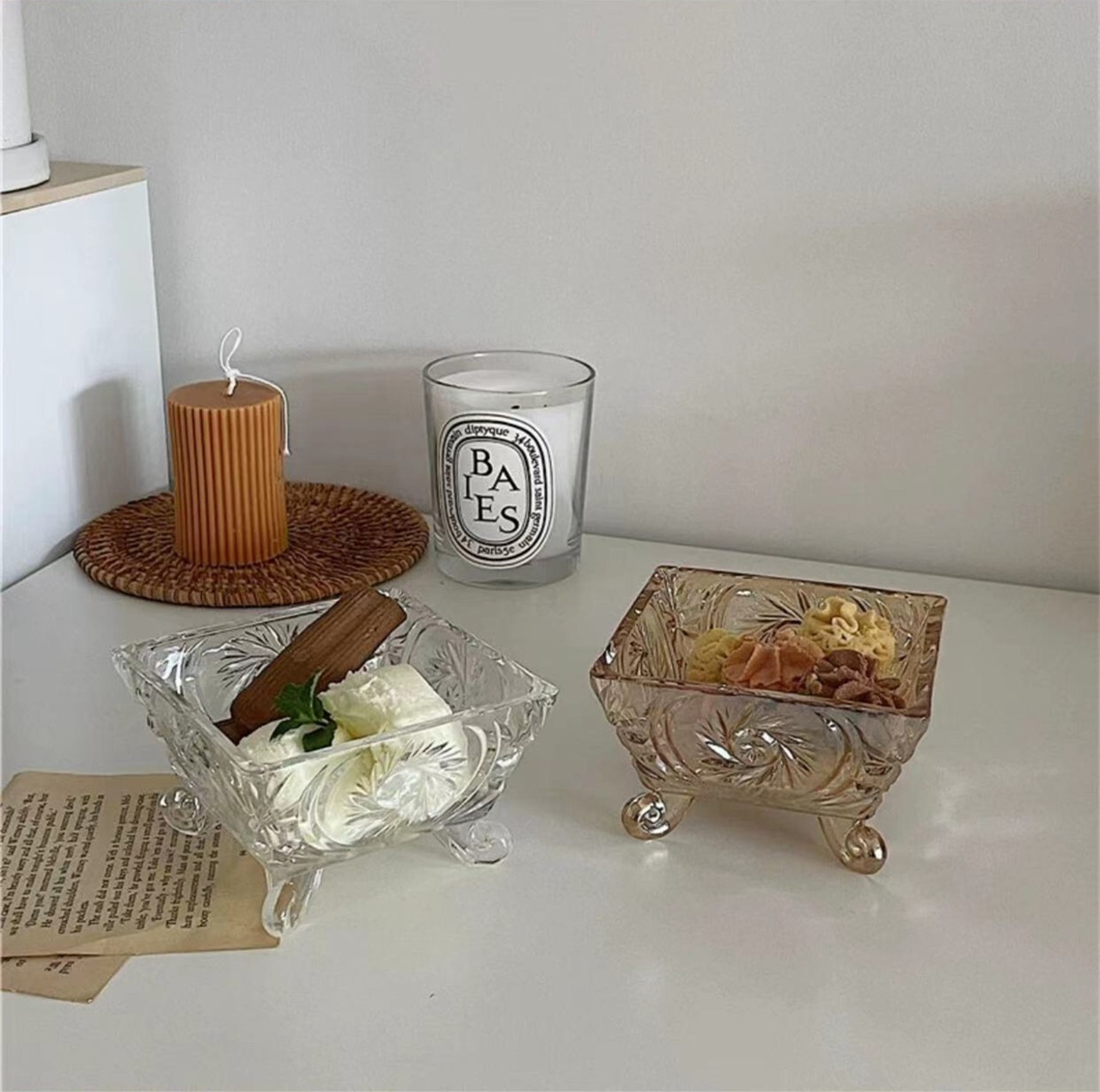 こちらはおしゃれなガラスコップ&小物収納でございます。
