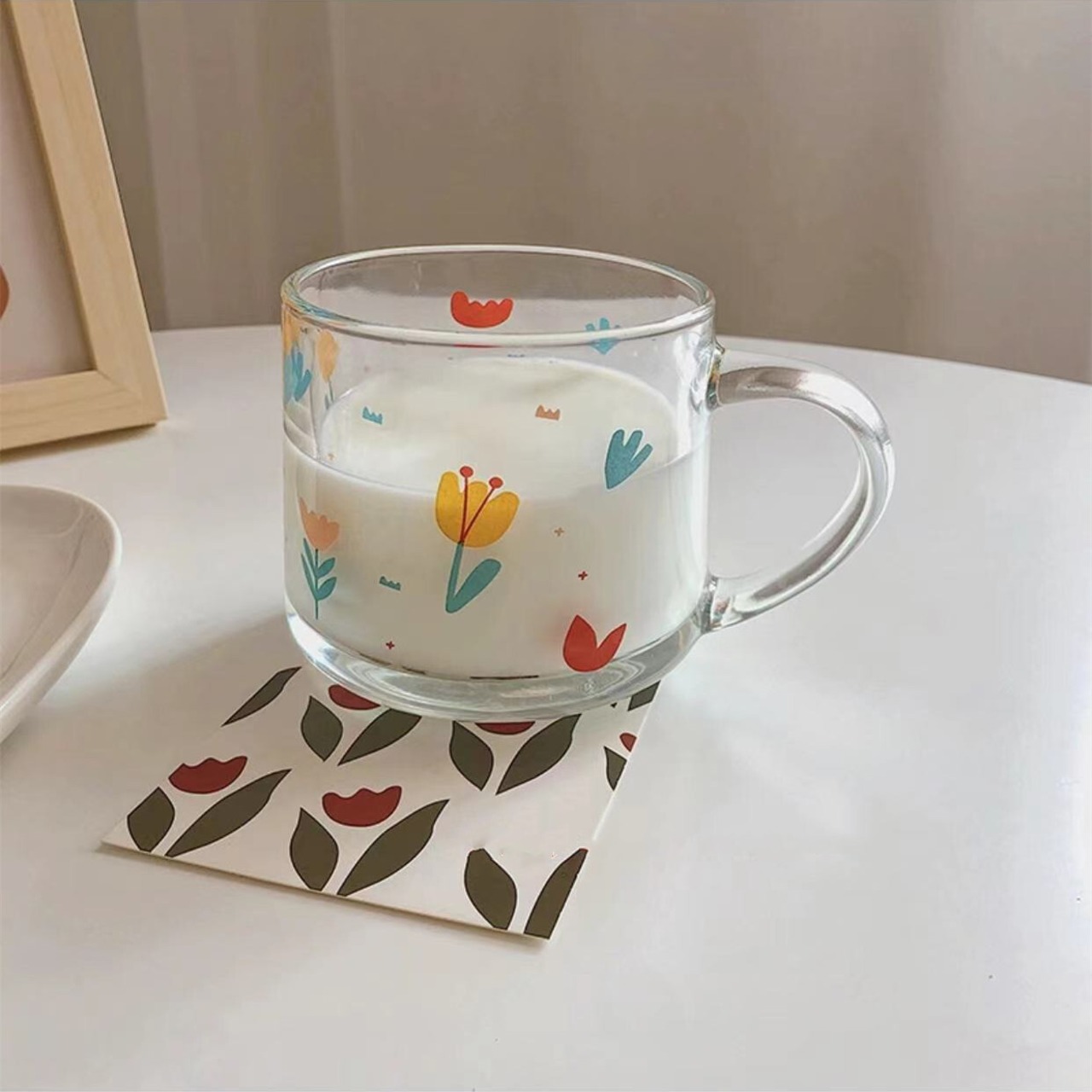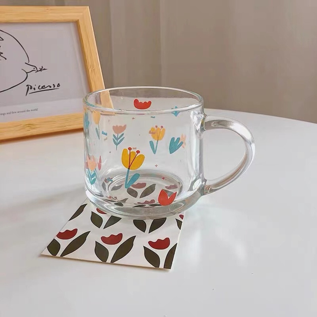 ★送料無料★韓国風 フラワーグラス グラス カップ マグカップ レトロ おうちカフェ 韓国雑貨 インテリア雑貨
