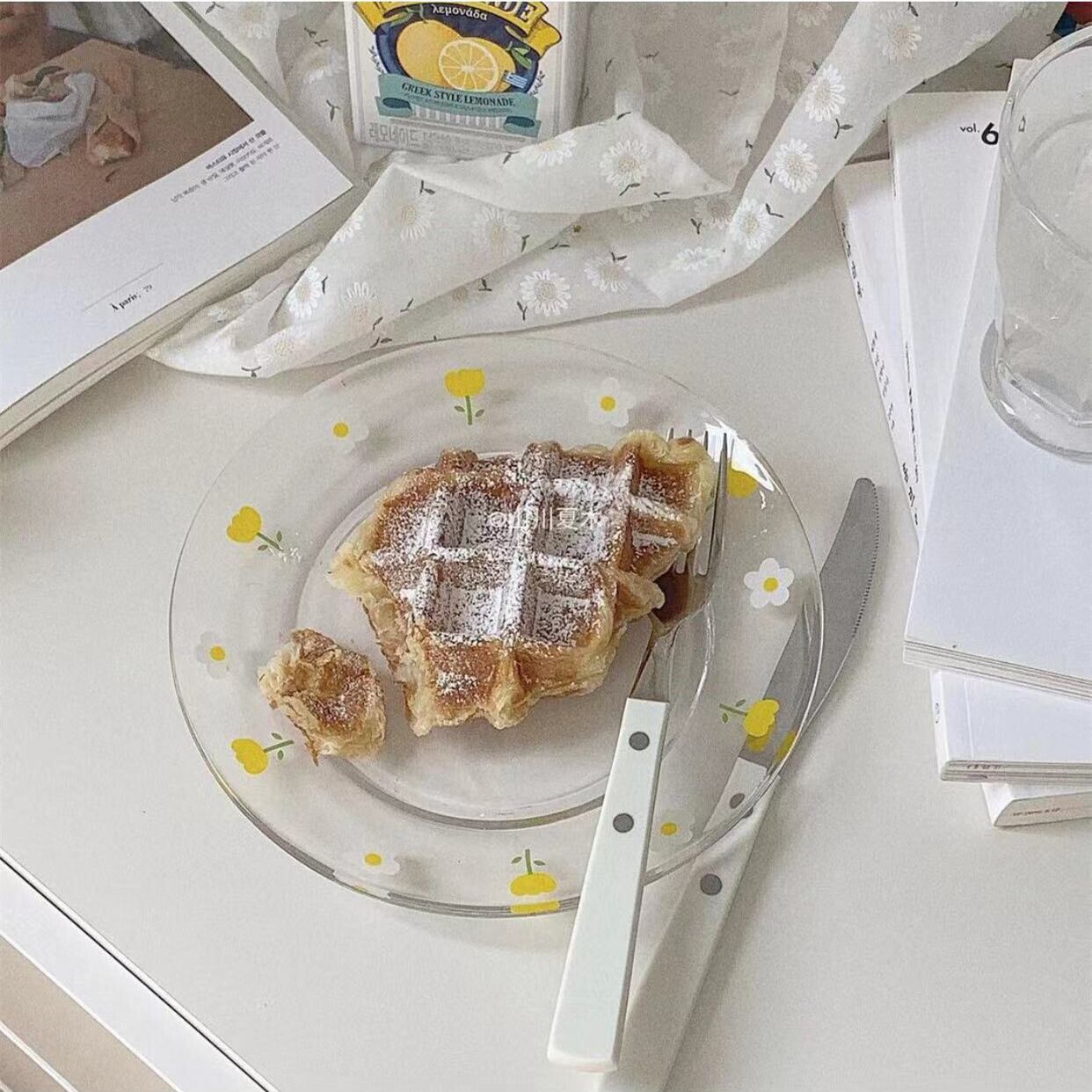 こちらは韓国風可愛いガラスのカップ&プレートセットでございます。