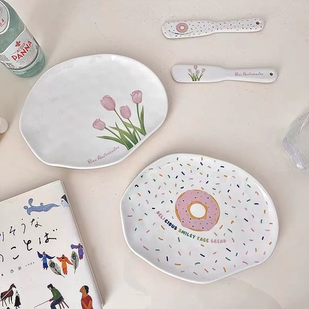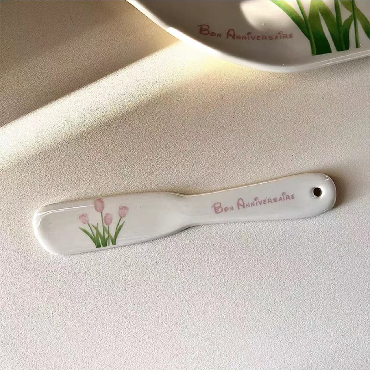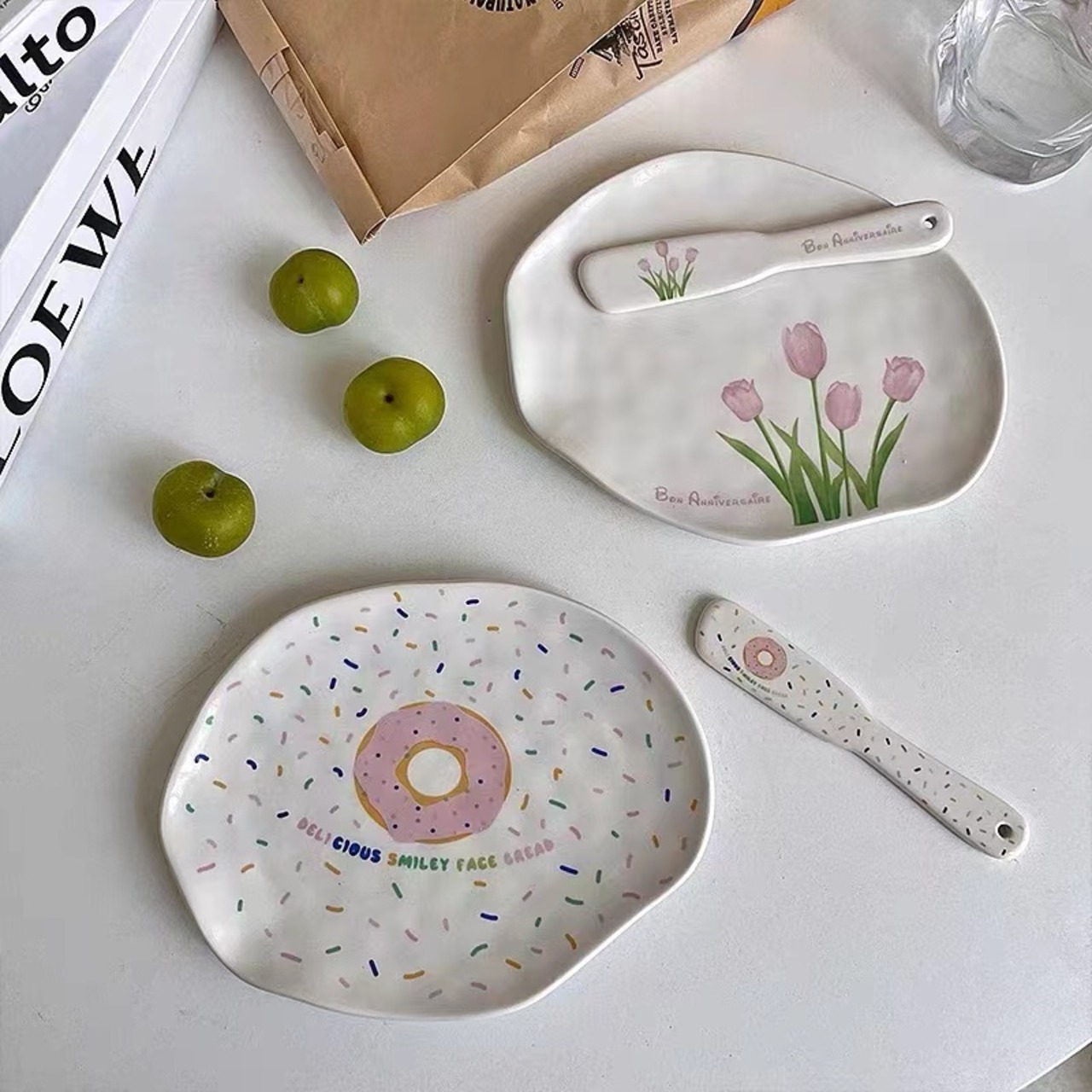 ★送料無料★韓国風 不規則プレート チューリップ柄プレート デザートプレート お皿 バターナイフ ホワイトトレー アクセサリー展示台 アクセサリートレー 変形 不規則 小物収納 アクセサリー収納 コースター 韓国雑貨 小物収納 韓国ファッション