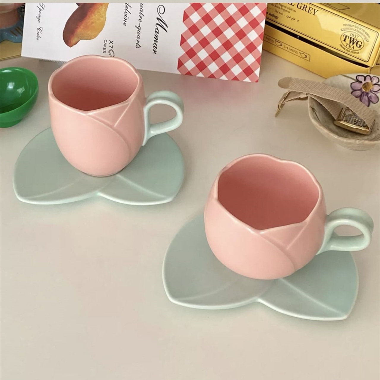 こちらはコーヒー&紅茶兼用フラワーマグカップとプレートセット でございます。