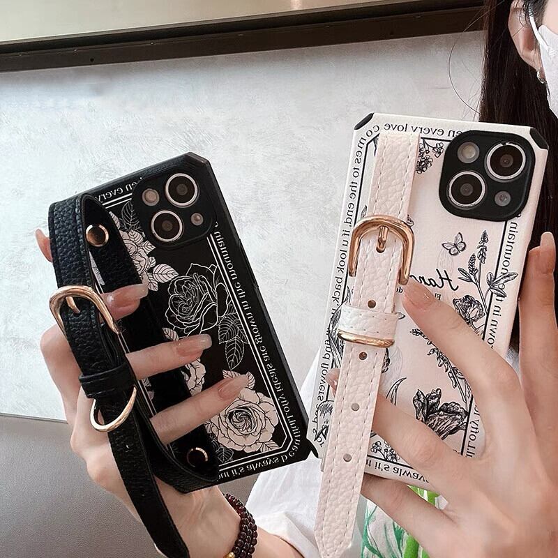 ★iphone14★送料無料★可愛いiphoneケース (バンド付き) iphoneケース iphoneカバー 携帯ケース 携帯カバー マルチケース 小物収納 収納ケース フラワーケース 韓国雑貨