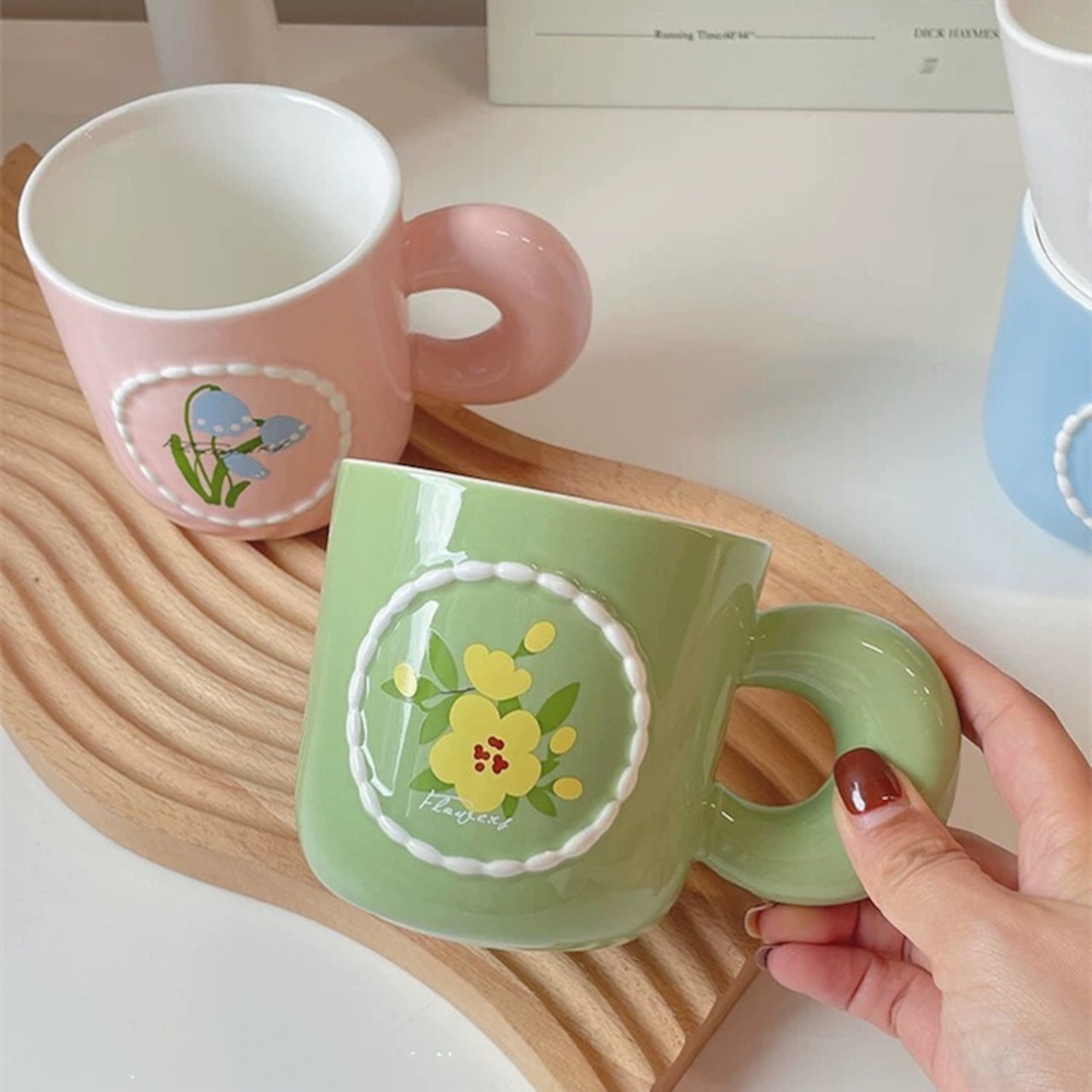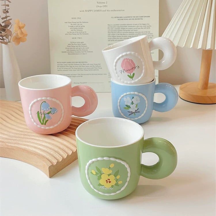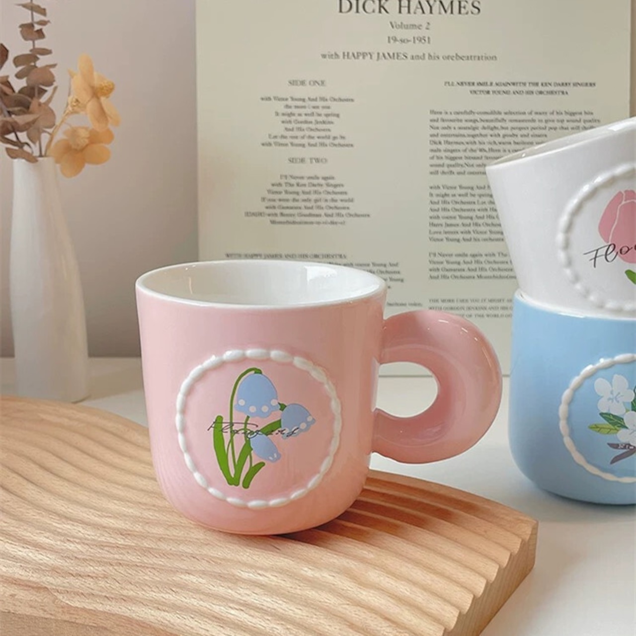 ★送料無料★コーヒー&紅茶兼用 韓国風マグカップ フラワーマグカップ マグカップ カップ マグカップ カップ レトロ 韓国雑貨 北欧風