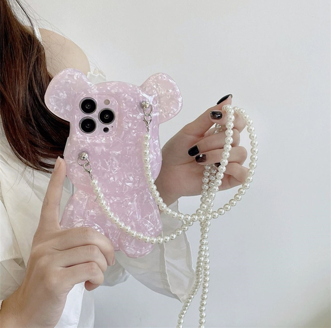 ★送料無料★可愛いベアiphoneケース(パールベルト付き付き) iphoneカバー 携帯ケース 携帯カバー 韓国雑貨