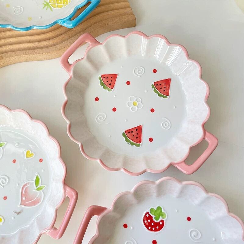 ★送料無料★可愛い持ち手付きフルーツのプレート プレート デザートプレート お皿 レトロ 韓国雑貨 韓国食器