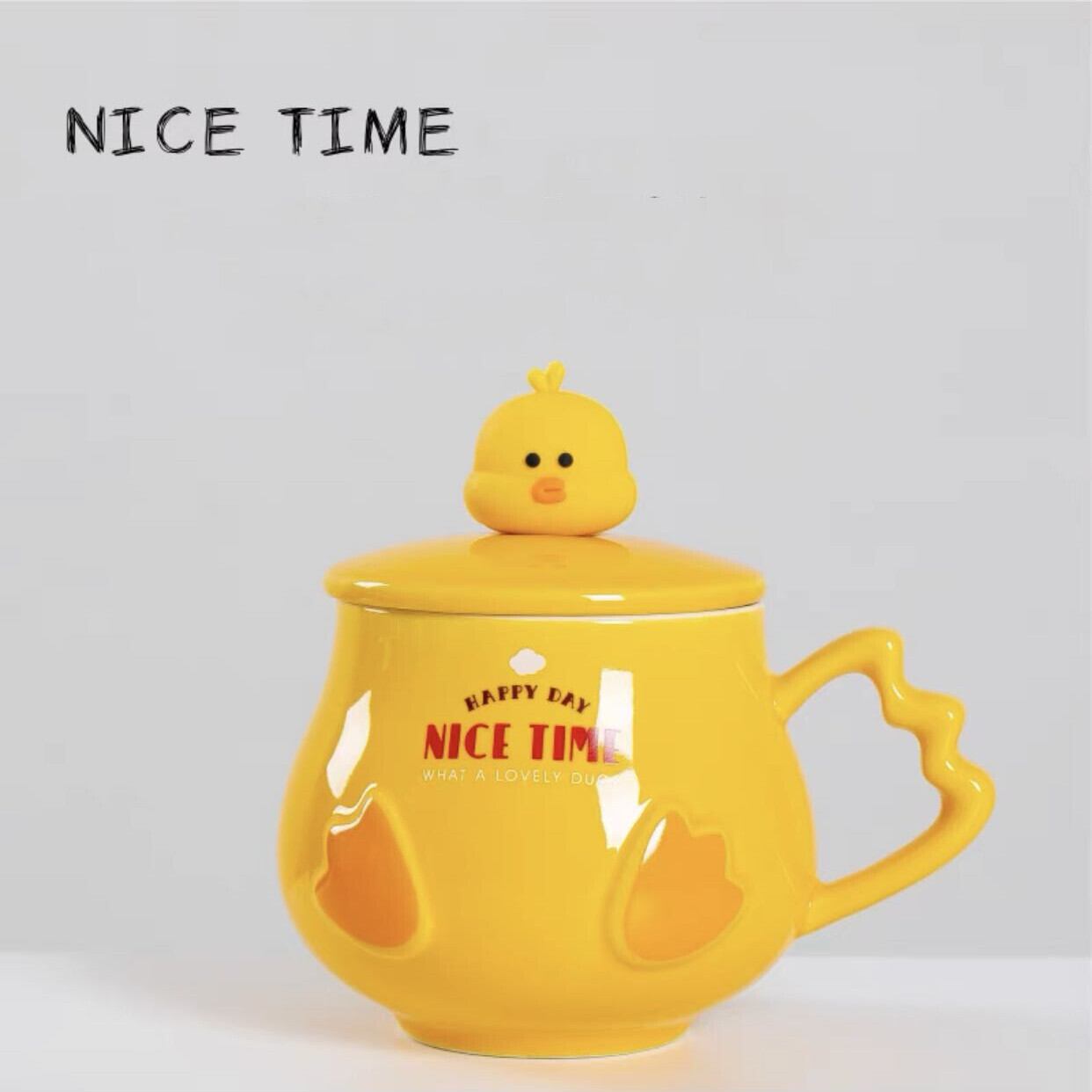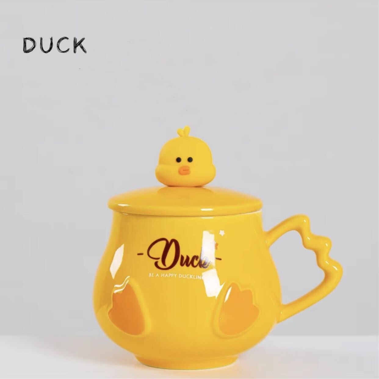 ★送料無料★可愛いduckマグカップ(蓋&スプーン付き) DUCKマグカップ オリジナルカップ おうちカフェ 韓国雑貨 北欧風
