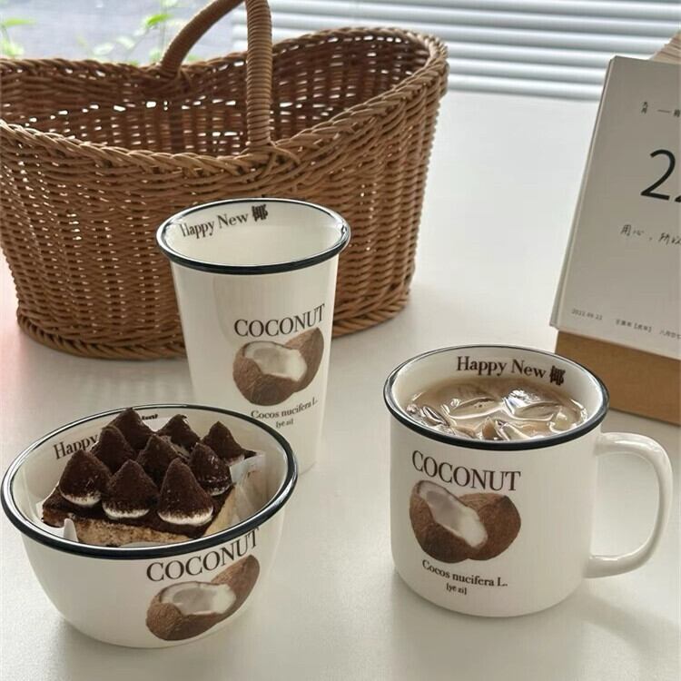 ★送料無料★可愛いココナッツのボウルORマグカップ ボウル サラダボウル ヨーグルトボウル 韓国食器 レトロ