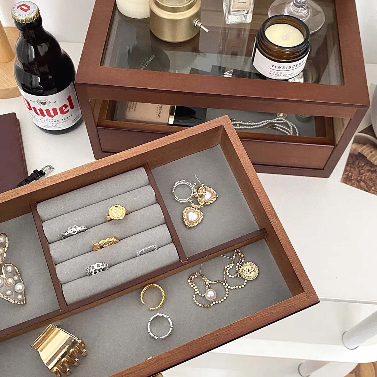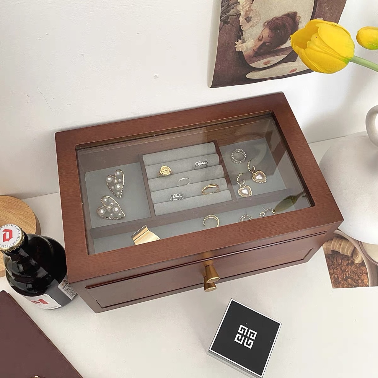 ★送料無料★2段ウッドジュエリーボックス アクセサリー収納ボックス 収納ボックス 収納ケース インテリア雑貨 韓国雑貨