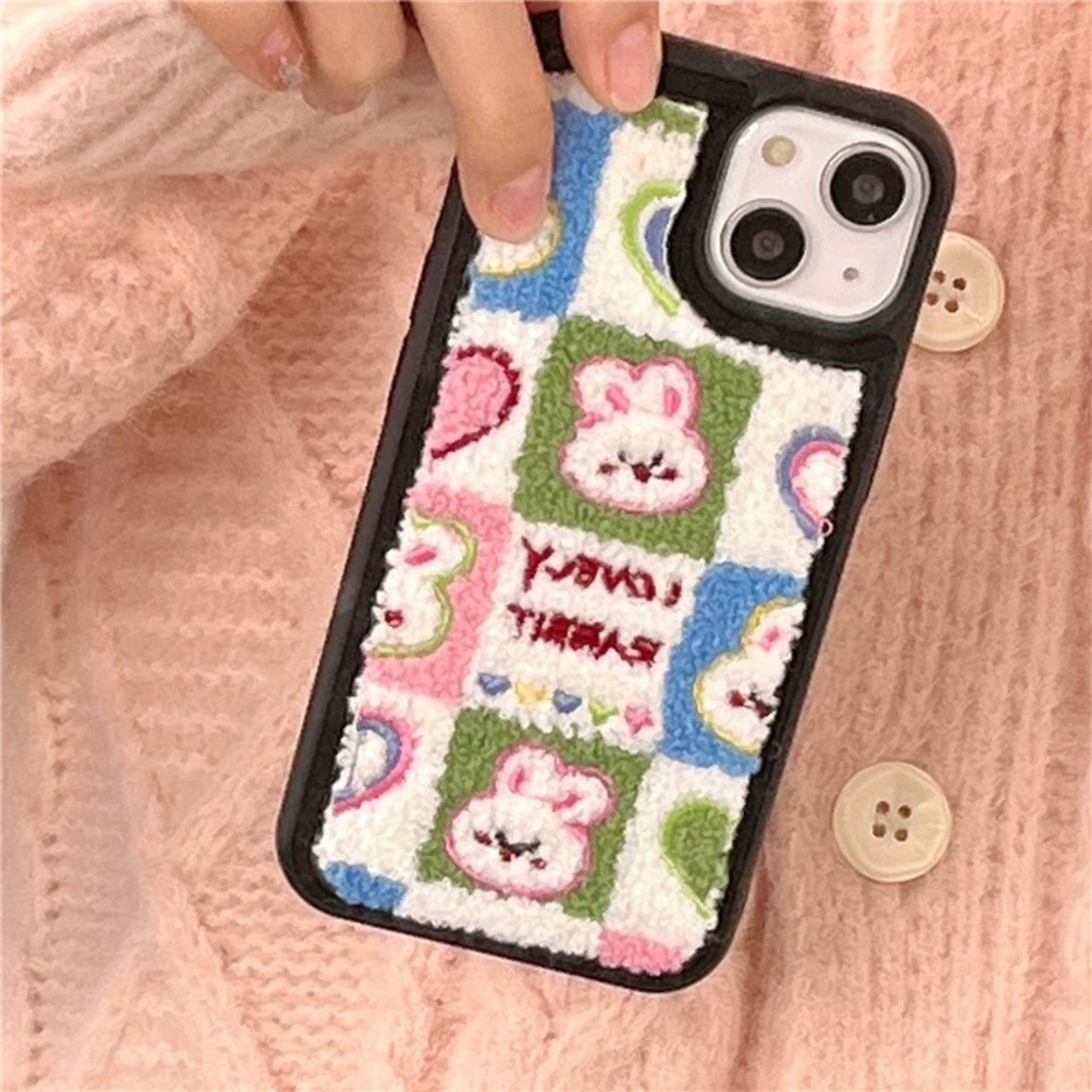 ★iPhone14★送料無料★可愛いウサギのiPhoneケース 刺繡 高級感 スマホケース オリジナルiphoneケース iphoneカバー 携帯ケース 携帯カバー 韓国雑貨