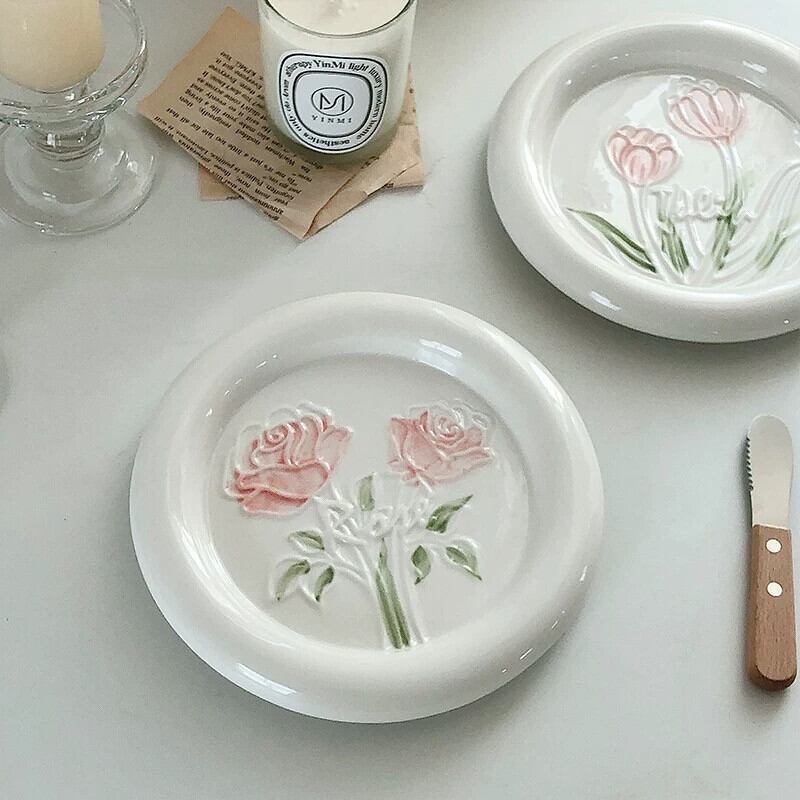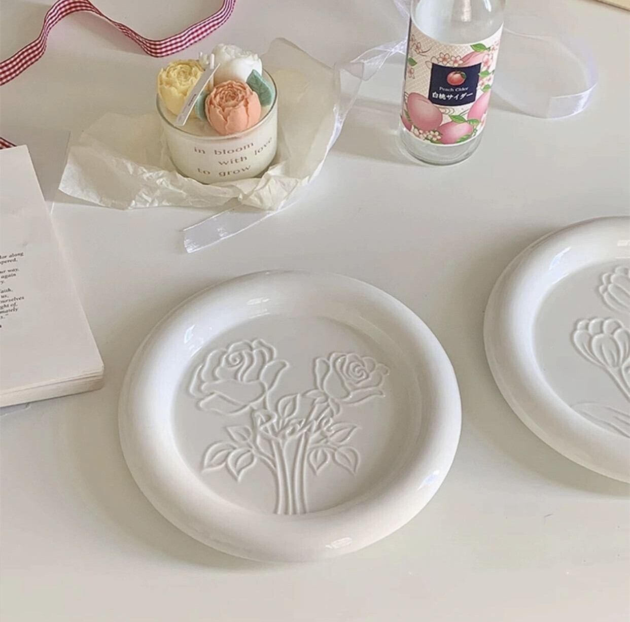 ★送料無料★韓国風 フラワープレート 円形プレート デザートプレート お皿 ホワイトトレー アクセサリー展示台 アクセサリートレー 変形 不規則 小物収納 アクセサリー収納 コースター 韓国雑貨 小物収納 韓国ファッション