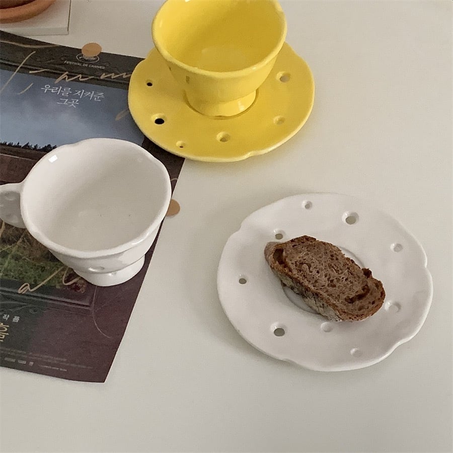 ★送料無料★コーヒー&紅茶兼用 チーズのマグカップ&ソーサーセット マグカップ カップ レトロ 韓国雑貨 北欧風