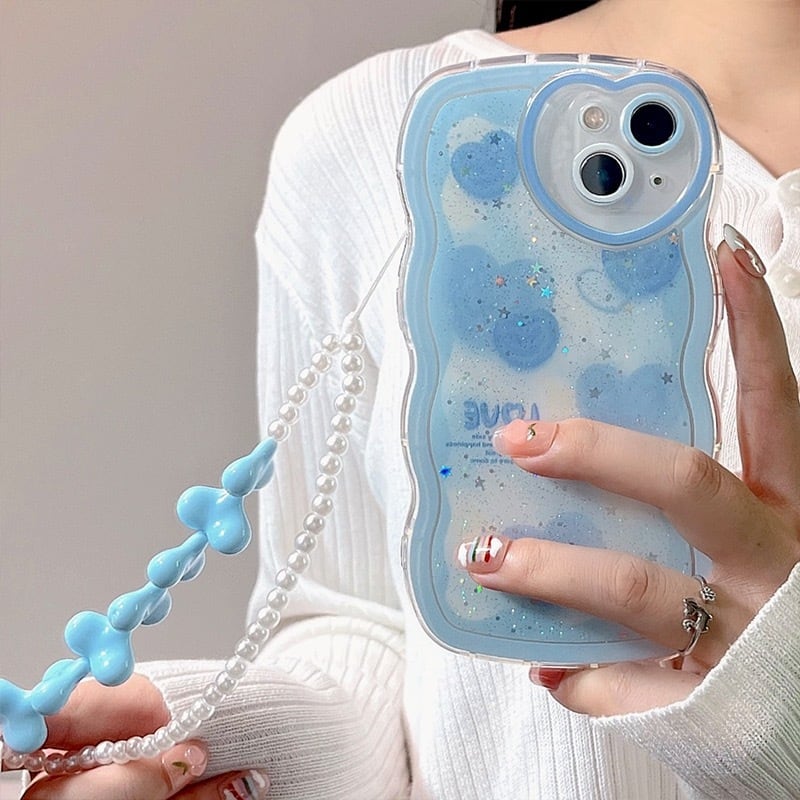 ★iPhone14★送料無料★ブルーハートのiphoneケース(ストラップ付き) 高級感 スマホケース オリジナルiphoneケース iphoneカバー 携帯ケース 携帯カバー 韓国雑貨