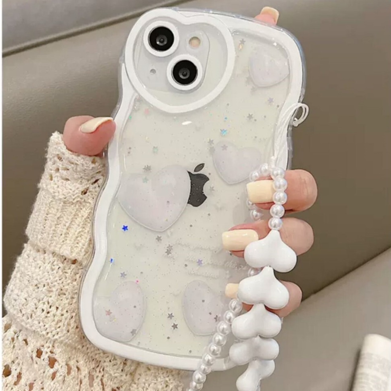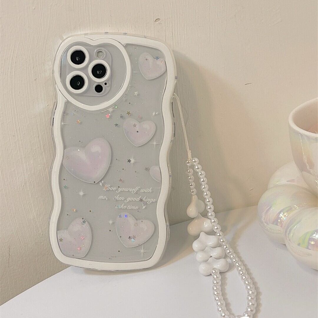 ★iPhone14★送料無料★ホワイトハートのiphoneケース(ストラップ付き) 高級感 スマホケース オリジナルiphoneケース iphoneカバー 携帯ケース 携帯カバー 韓国雑貨