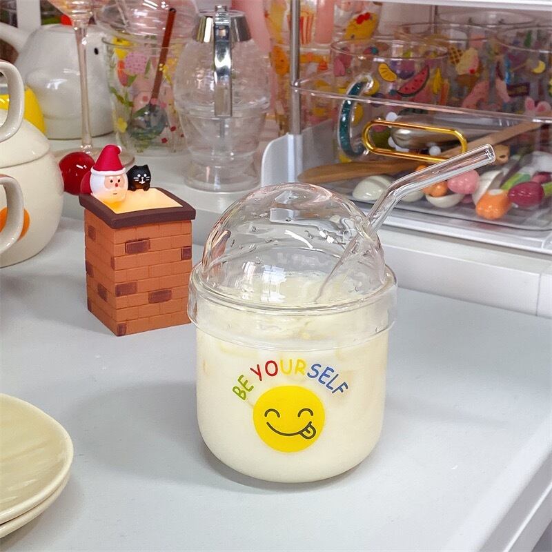 レトロなグラス(蓋&ストロー付き)です。