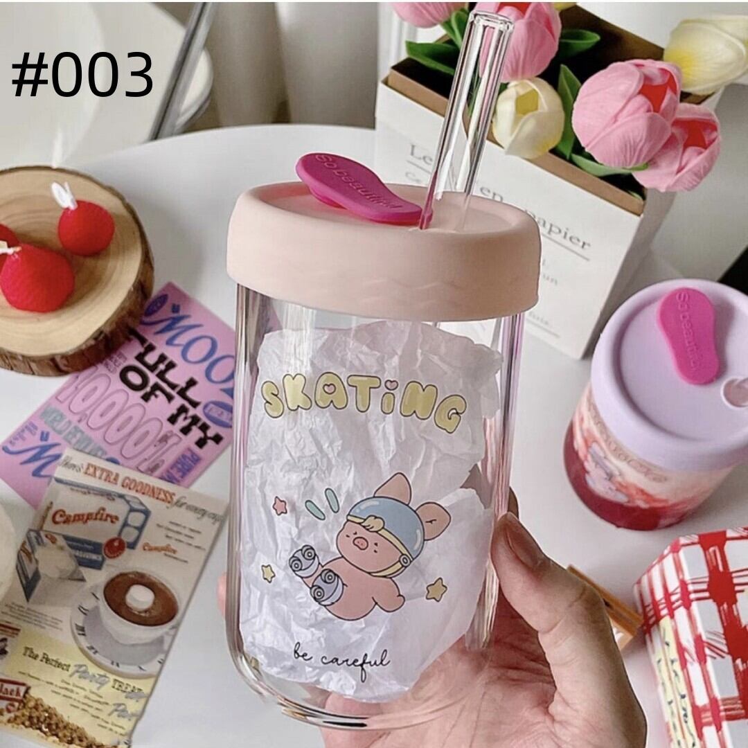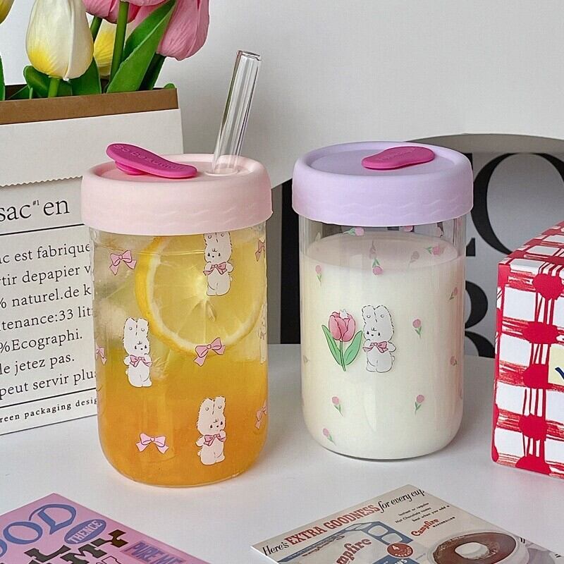 ★送料無料★レトロなグラス(シリコン蓋&ストロー付き) グラス おしゃれなグラス レトロ おうちカフェ 韓国雑貨
