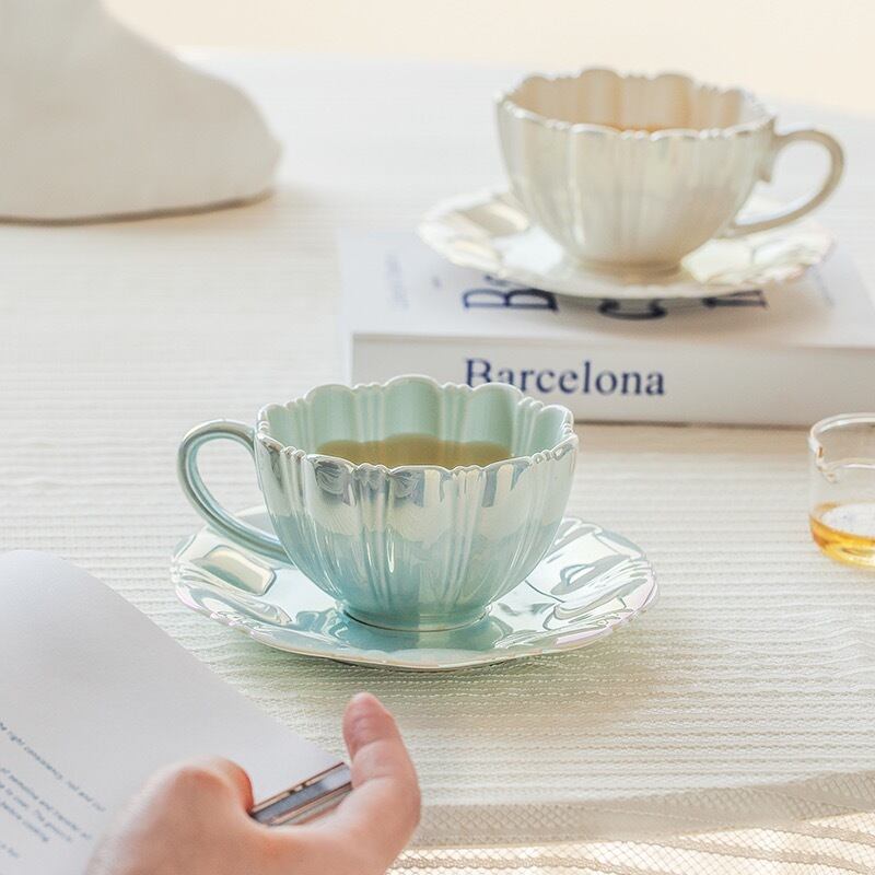★送料無料★コーヒー&紅茶兼用マグカップ&ソーサーセット マグカップ カップ レトロ 韓国雑貨 北欧風