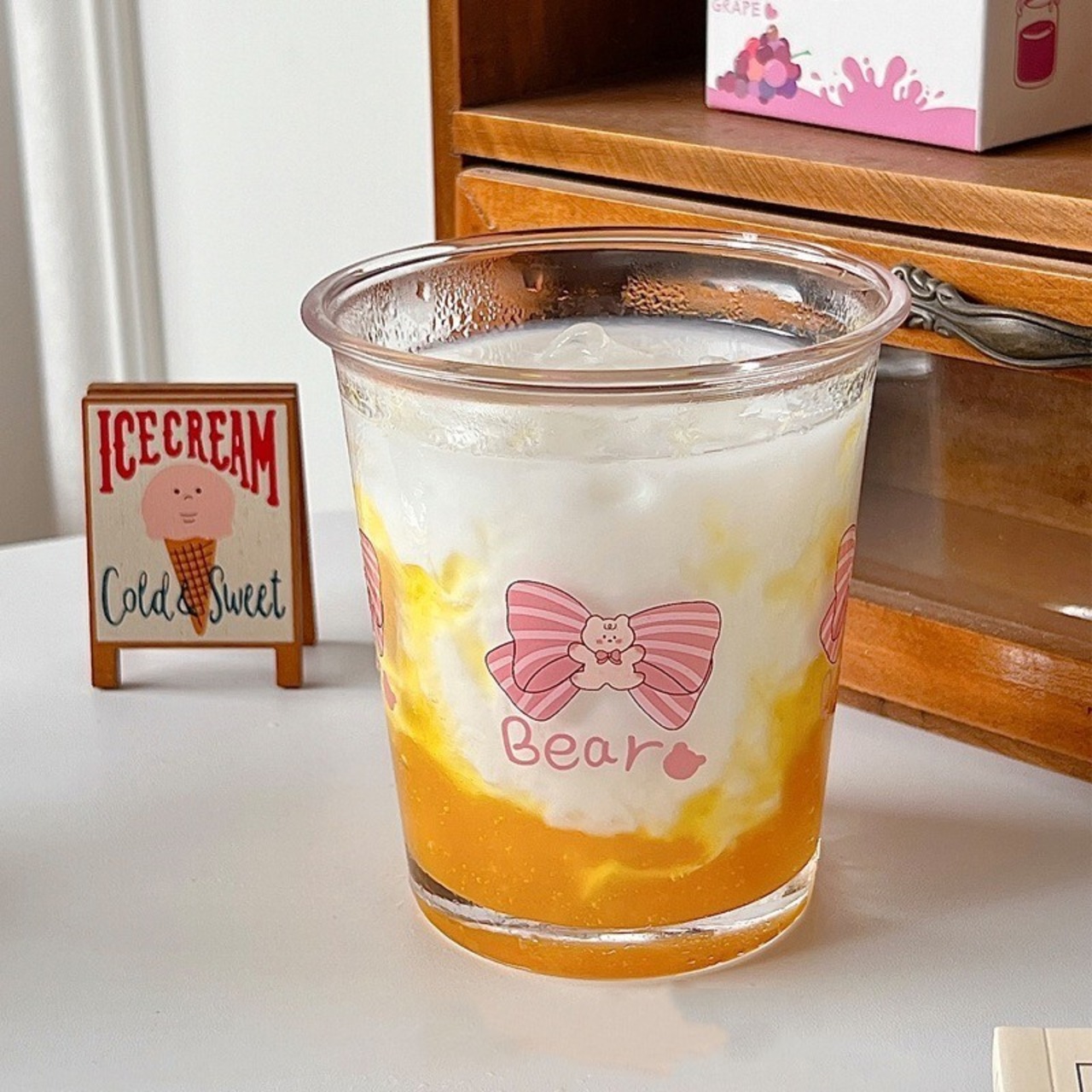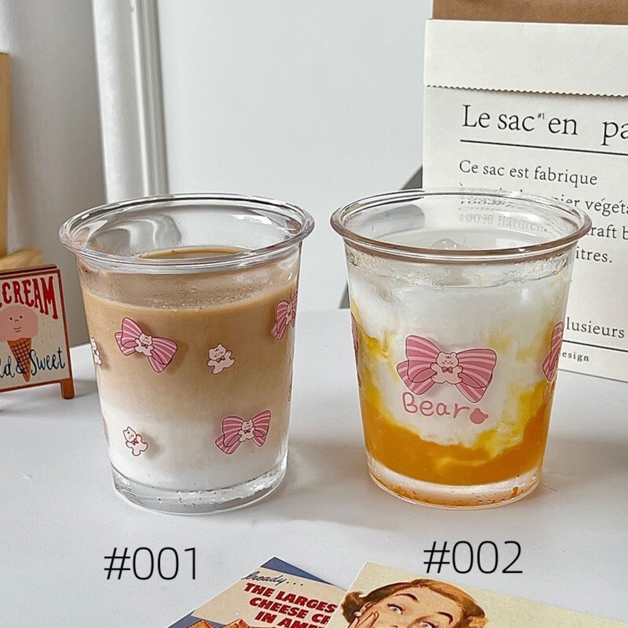 ★送料無料★レトロなグラス ピンクリボン柄 グラス おしゃれなグラス レトロ おうちカフェ 韓国雑貨