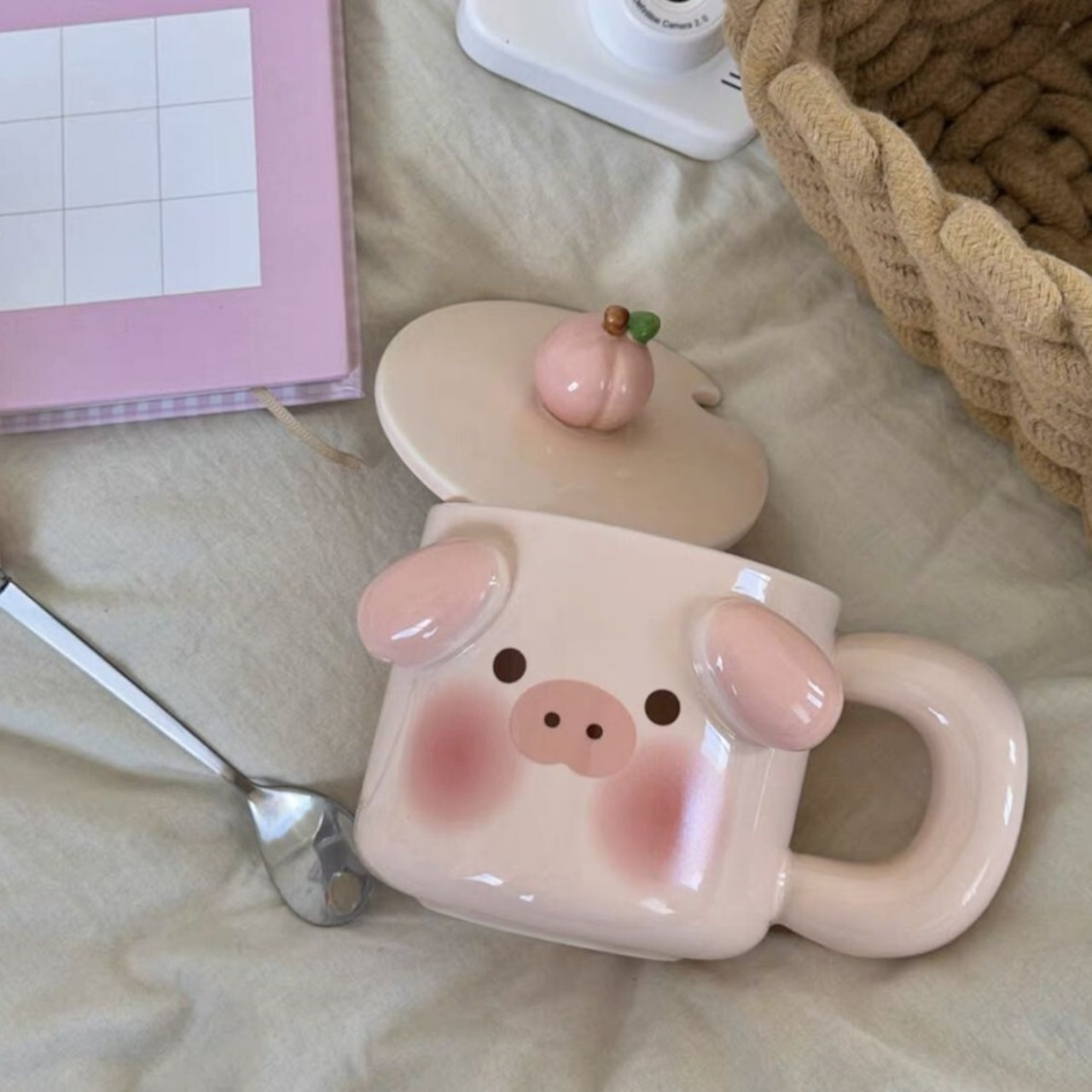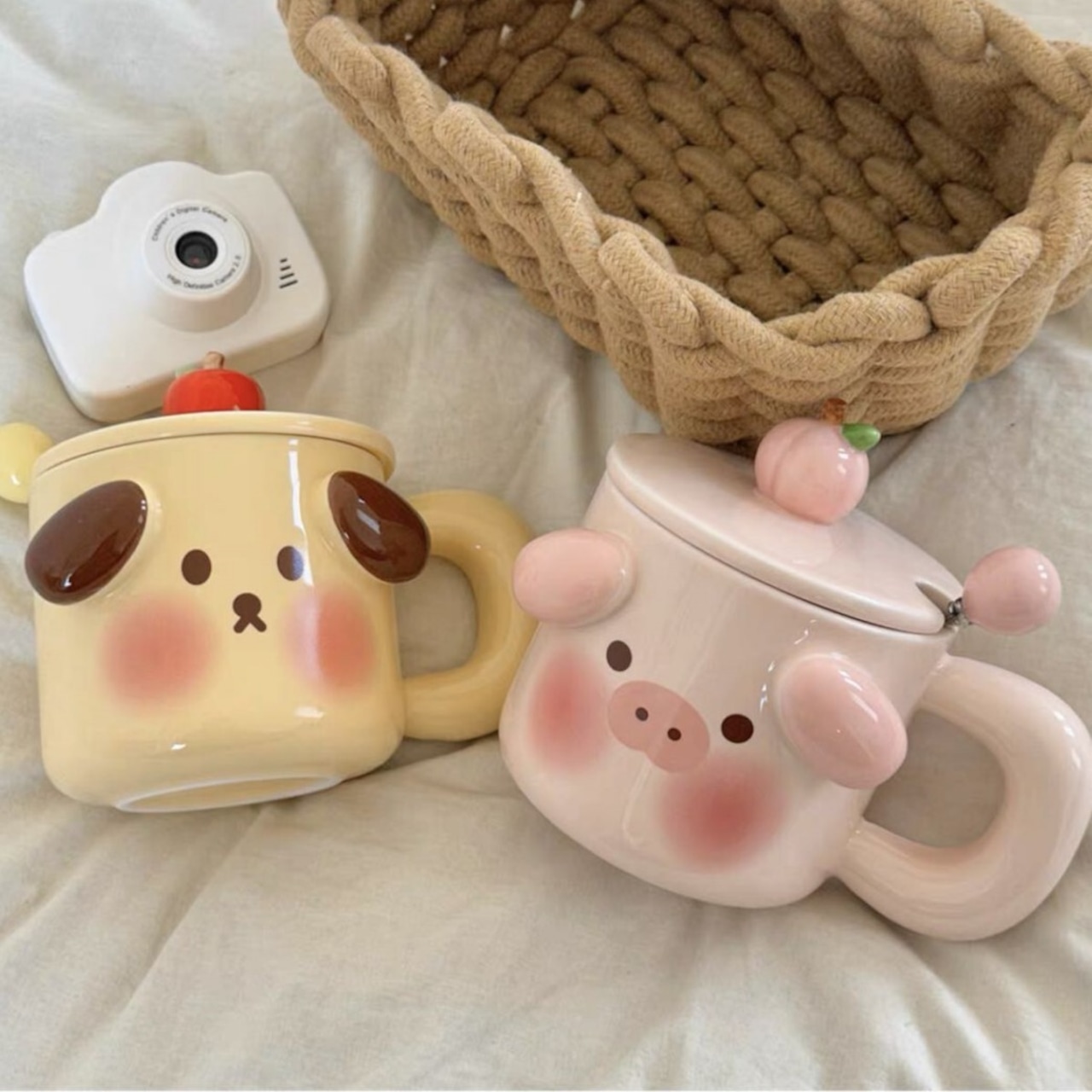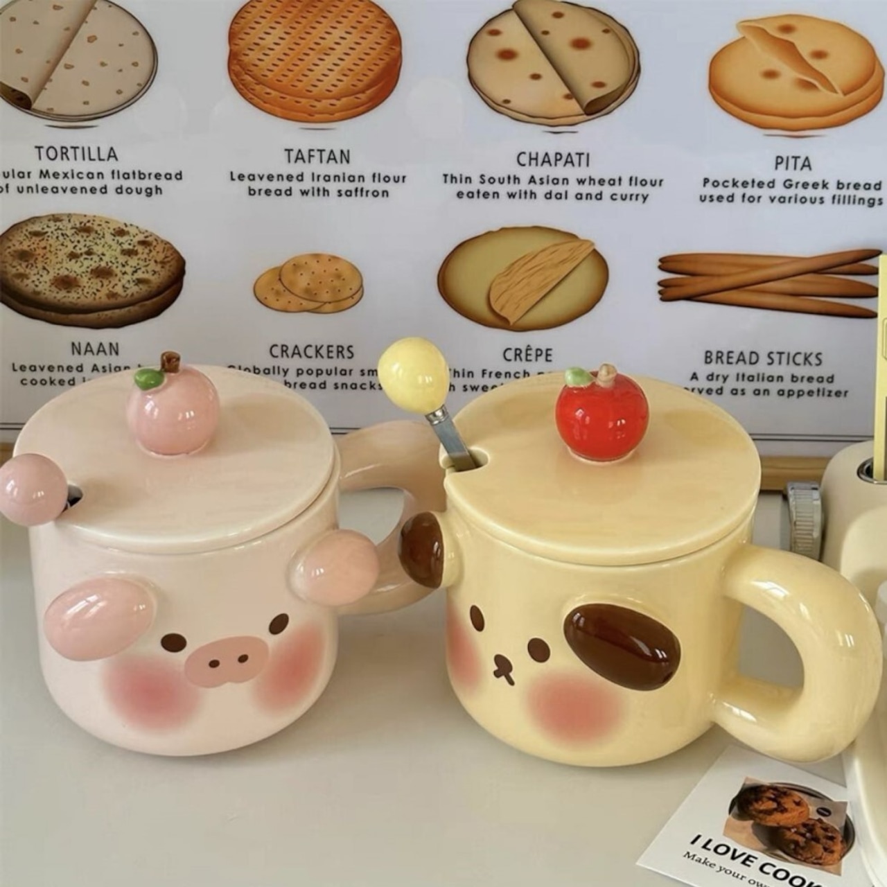 ★送料無料★レトロなマグカップ(蓋&スプーン付き) コップ CAFE カップ マグカップ レトロ 韓国雑貨 可愛い食器