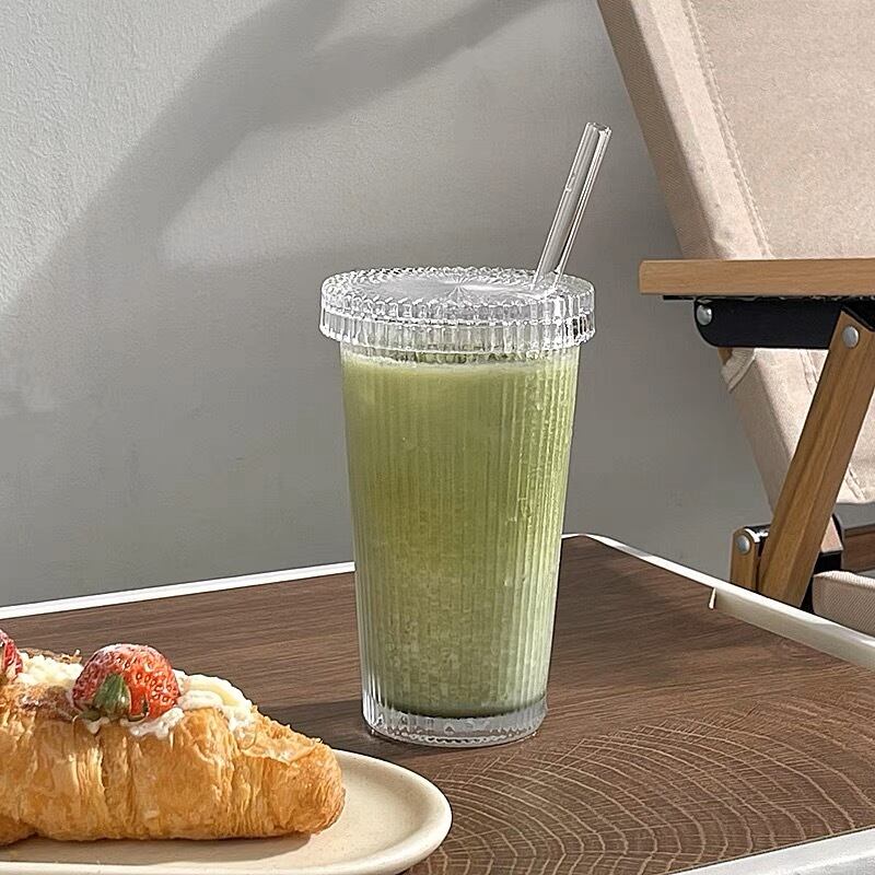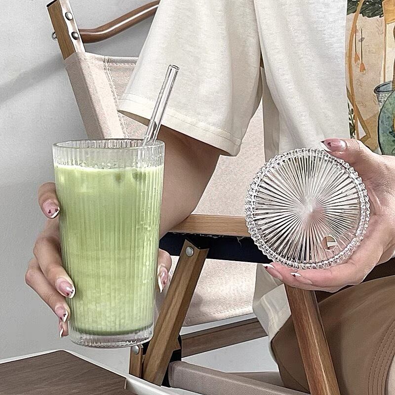★送料無料★レトロなグラス(蓋&ストロー付き) グラス おしゃれなグラス レトロ おうちカフェ 韓国雑貨