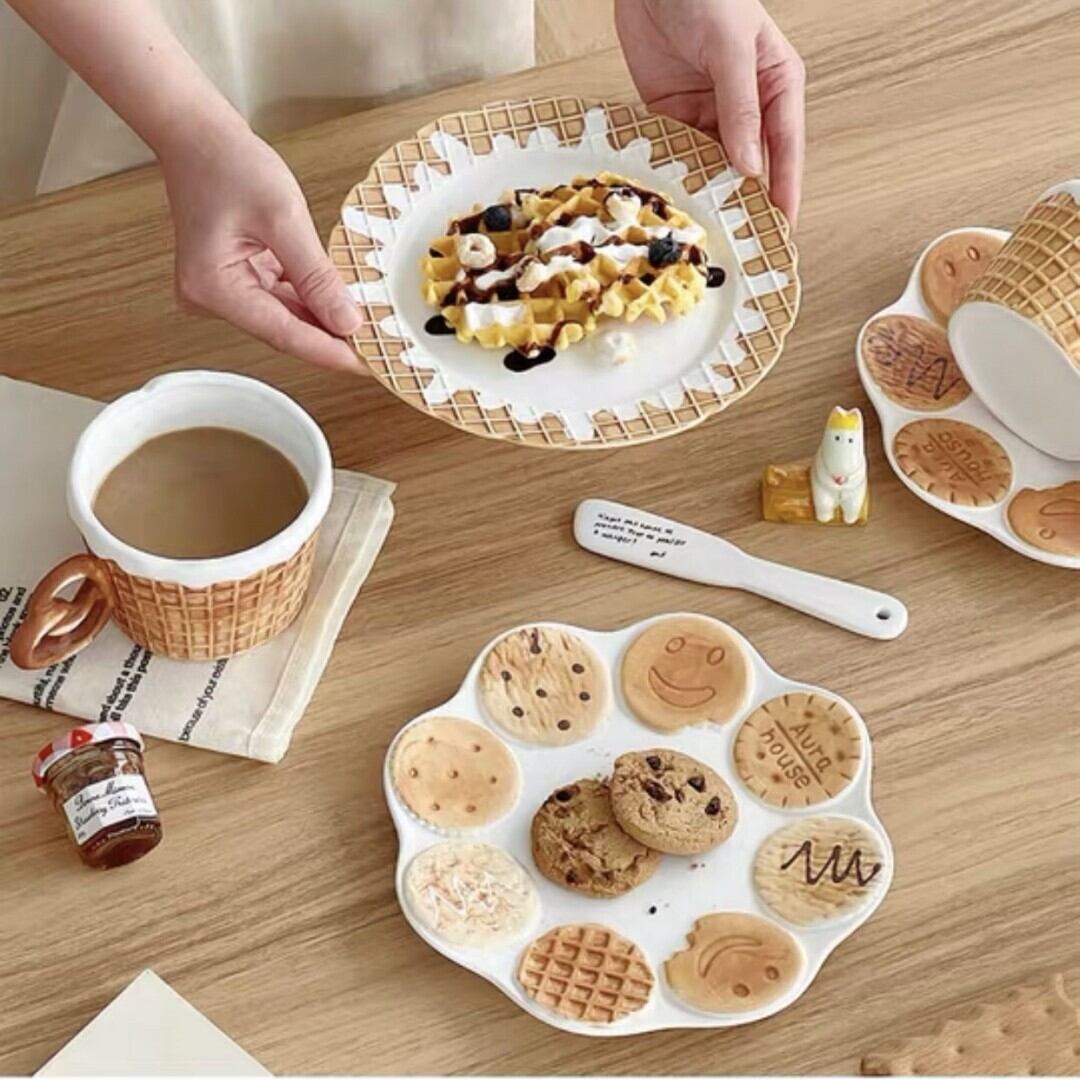 ★送料無料★コーヒー&紅茶兼用 韓国風マグカップ&プレートセット マグカップ カップ レトロ 韓国雑貨 北欧風
