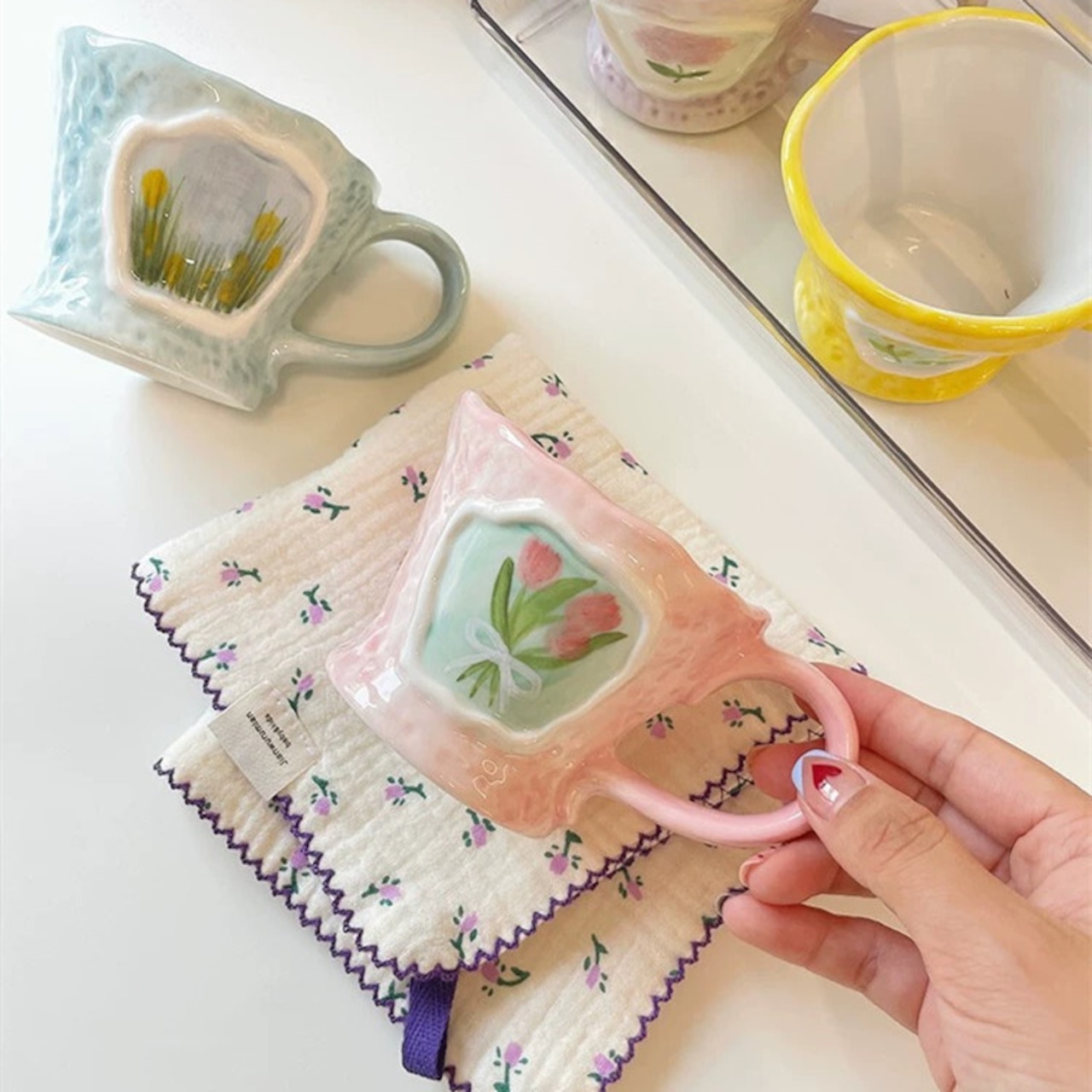 #マグカップ#カップ#コップ#フラワーカップ#コーヒーカップ#紅茶カップ#韓国食器#コップ#ディスプレイ#可愛いコップ#おうちカフェ#デザート#小物収納#可愛い食器