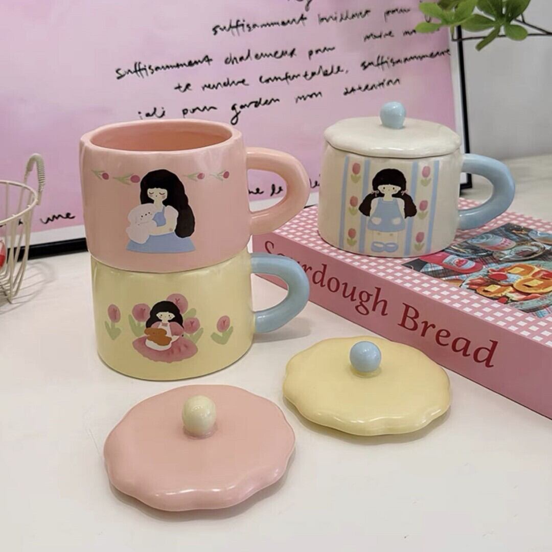 レトロなマグカップ(蓋付き) す。