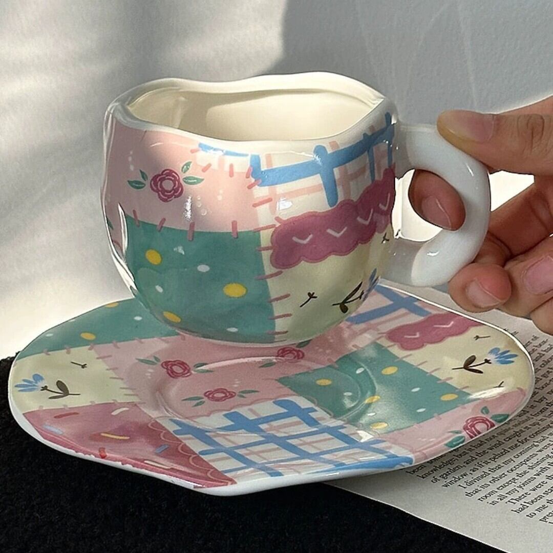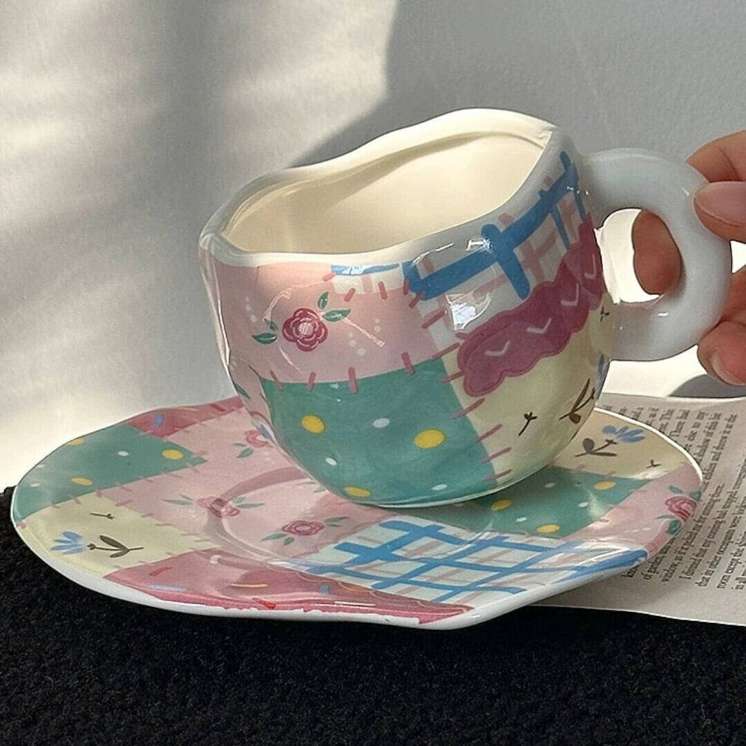 ★送料無料★コーヒー&紅茶兼用 韓国風マグカップ&プレートセット マグカップ カップ レトロ 韓国雑貨 北欧風